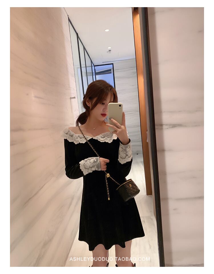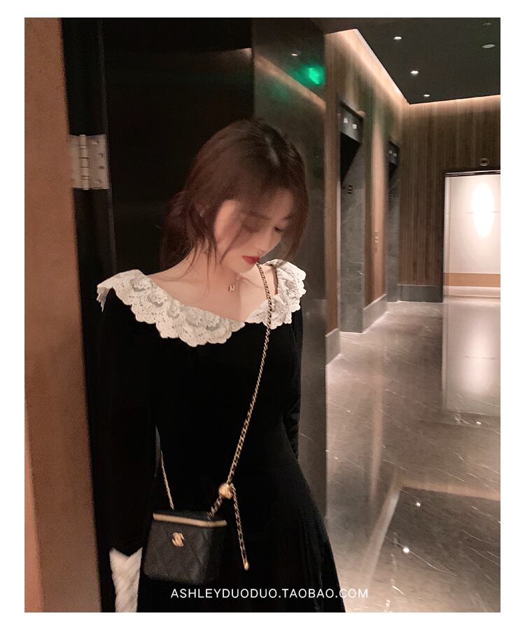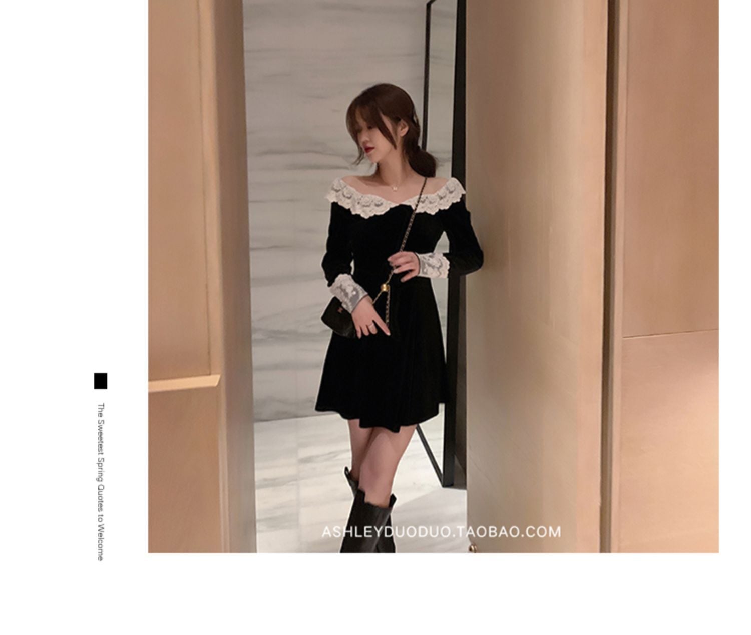フレンチレトロヘップバーンスタイルリトルブラックドレスウエストと薄い気質の女性ライトおなじみのスタイルゴールドベルベットドレス女性の冬のスカート ウィンター 冬物 yingd93079154128