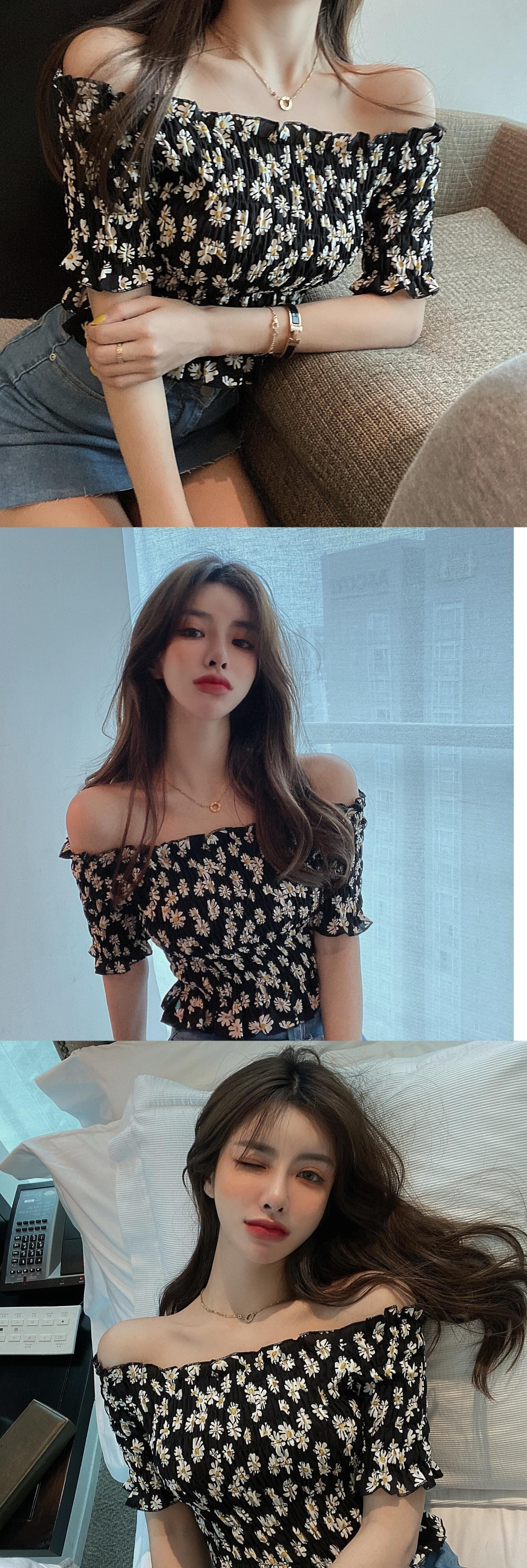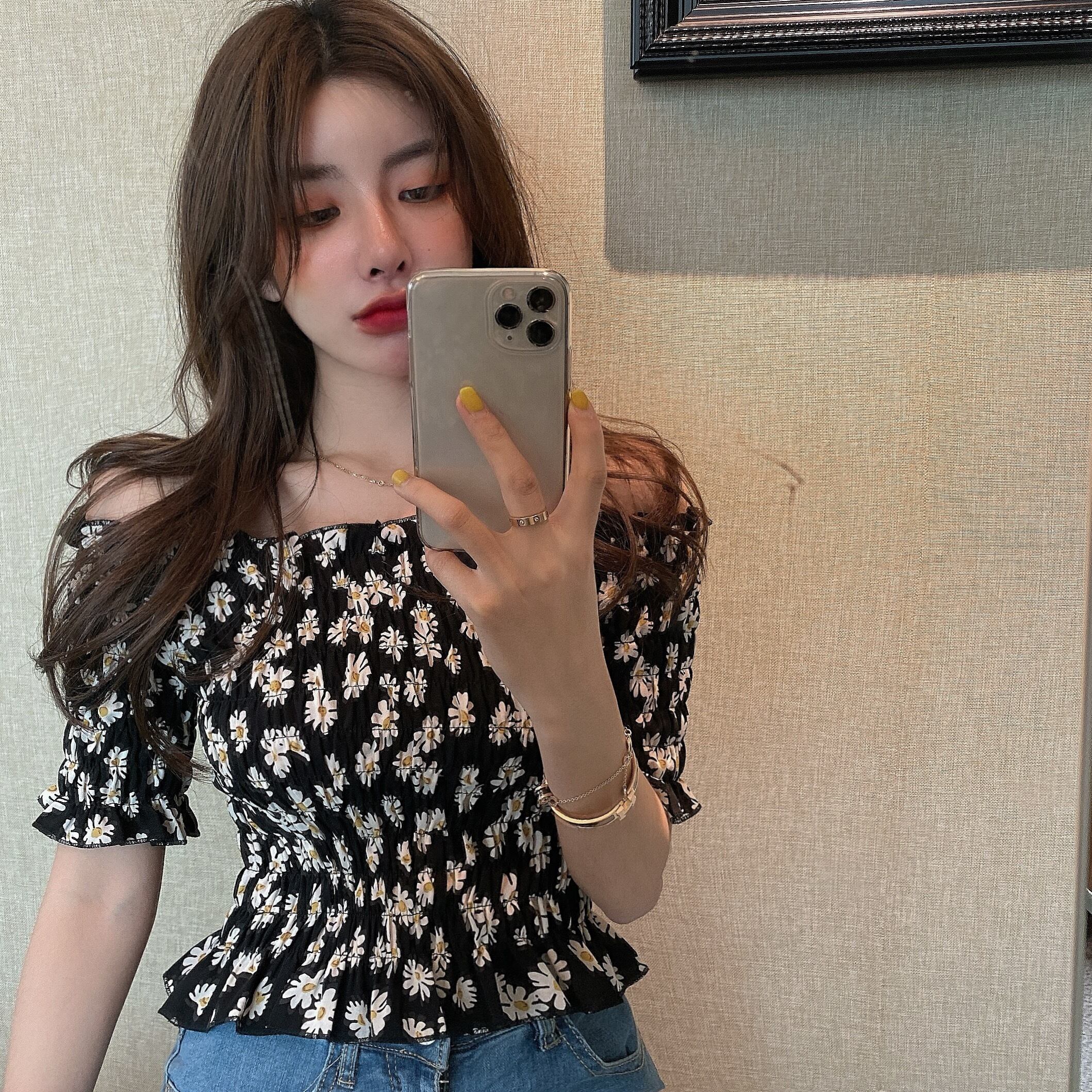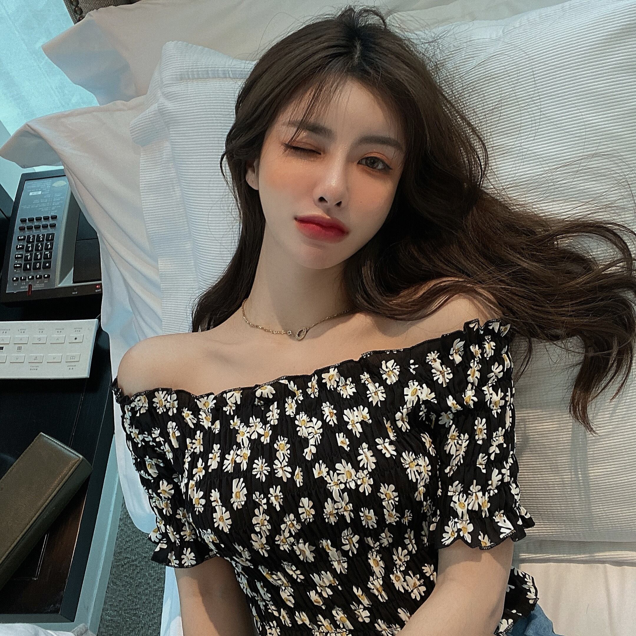 小さなしわのある菊レトロ香港フレーバースクエアカラーシャツ女性の2020年夏の新しいデザインセンスニッチワンワードカラーシフォントップ女性 サマー 夏物 スクウェア yingd12422477097