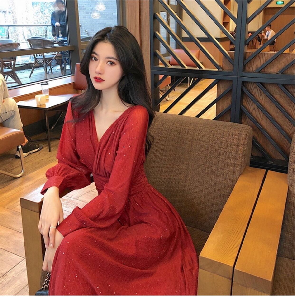 ロングスカートアンクルフェアリースタイルデザインセンススカートライトおなじみスタイル長袖ワンピース2020年秋新作レディース オータム 秋物 yingd43268043946