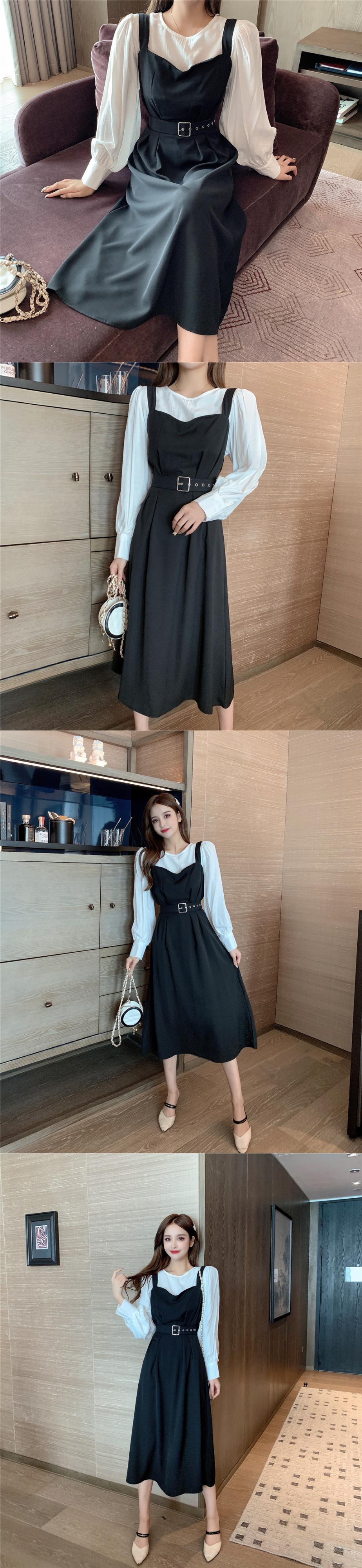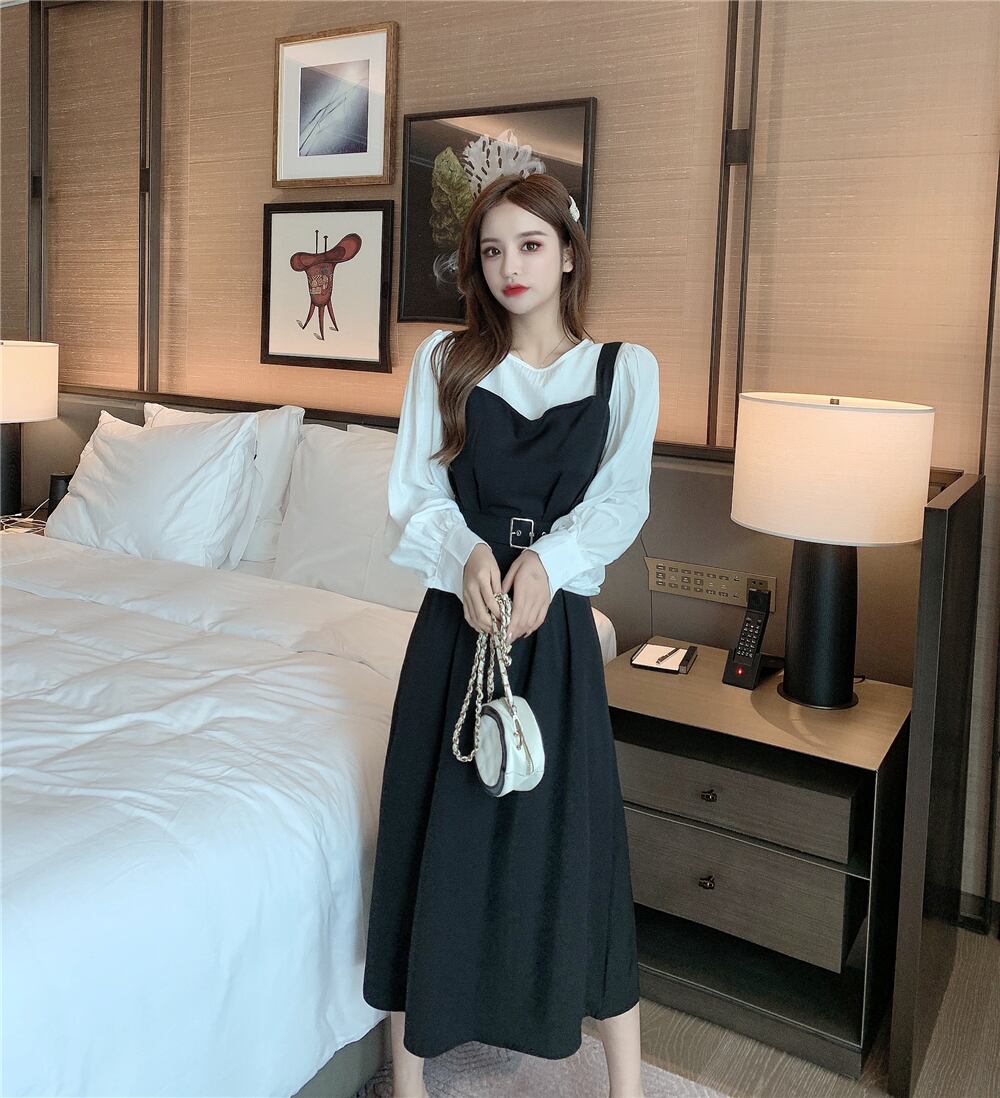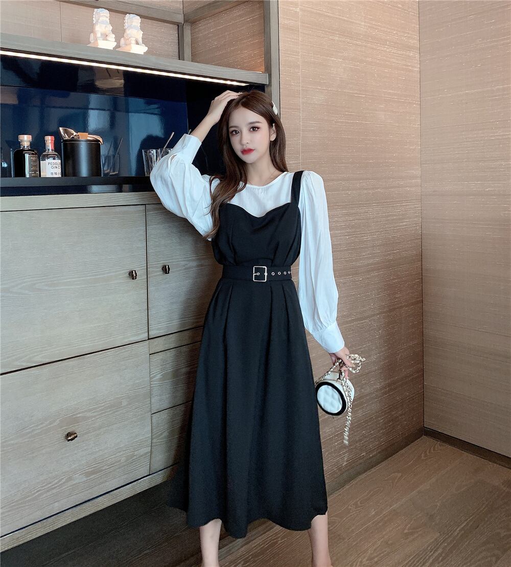 2020年秋の新作レディースフレンチレトロウエスト丈スレンダー気質ライトマチュアスタイルサスペンダードレスツーピースレディース オータム 秋物 yingd20865609150