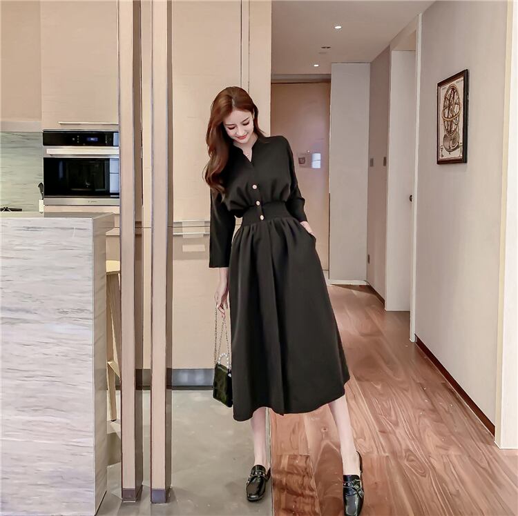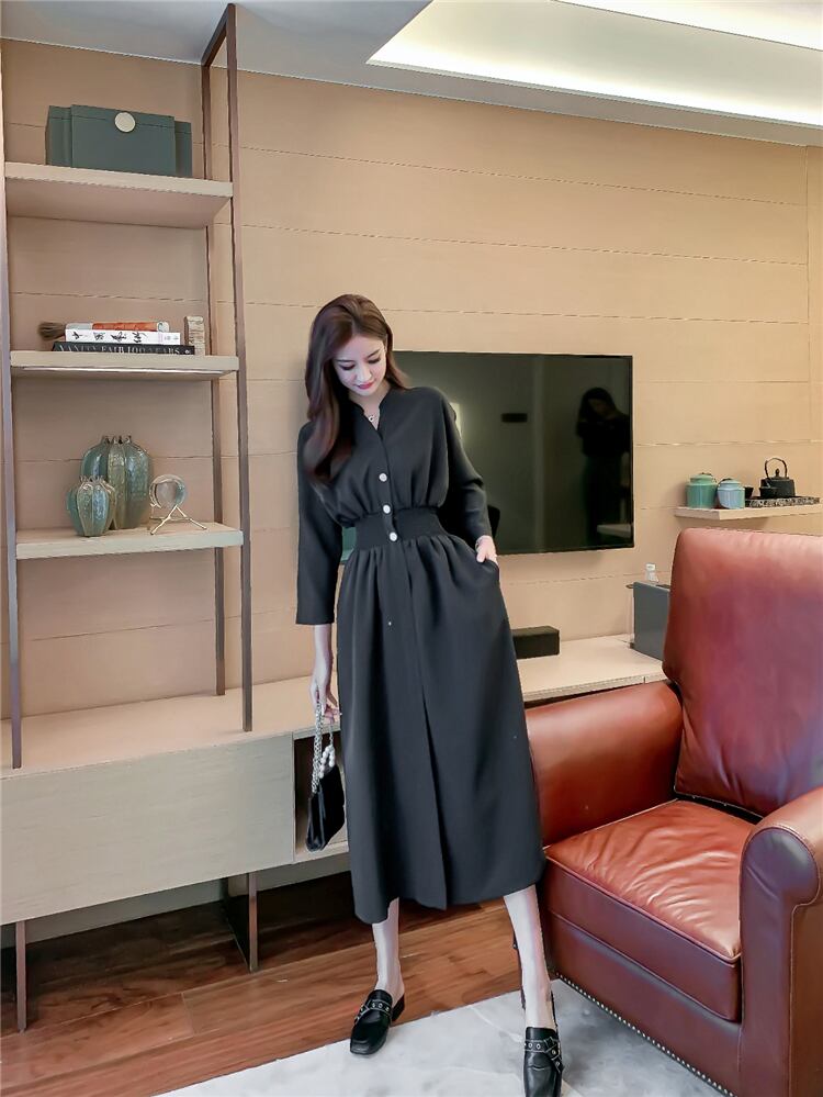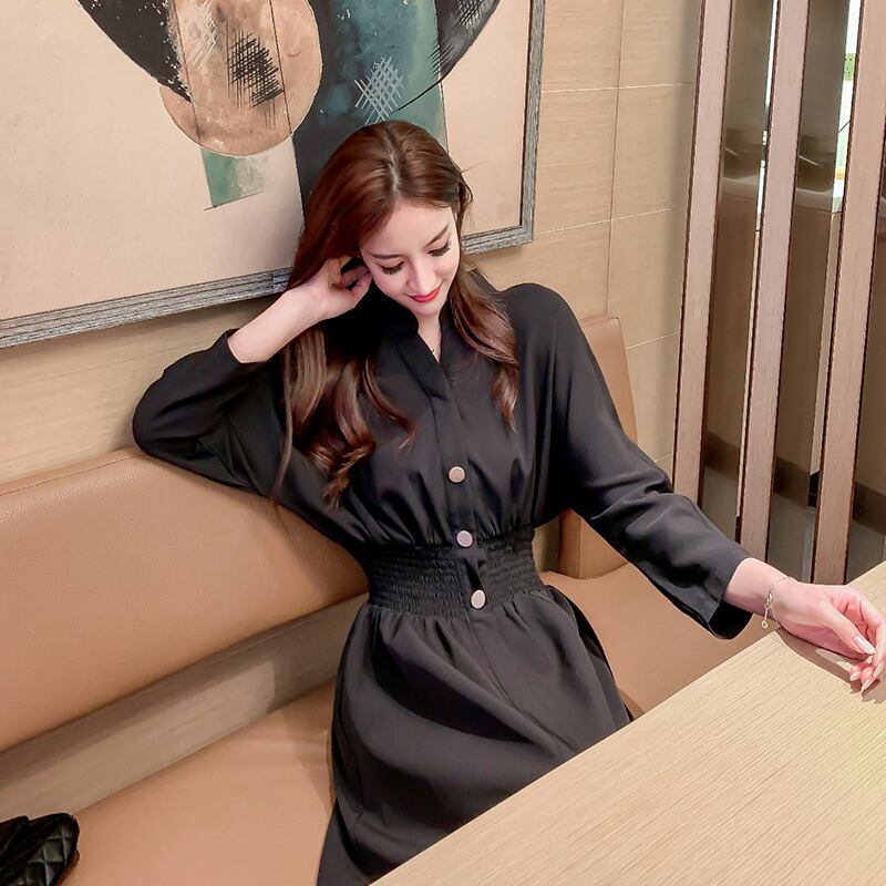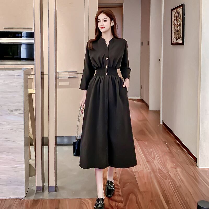 センススカート軽くなじみのあるスタイルのロングスカートは薄くて気質の高いフレンチレトロミドル丈オーバーザニー長袖ワンピース yingd68066185938