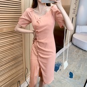 フランスのレトロなスクエアネックパフスリーブ気質小さなスカートのデザインセンスニッチセクシーなスリットスリムドレス女性の夏 サマー 夏物 スクウェア yingd40450002182