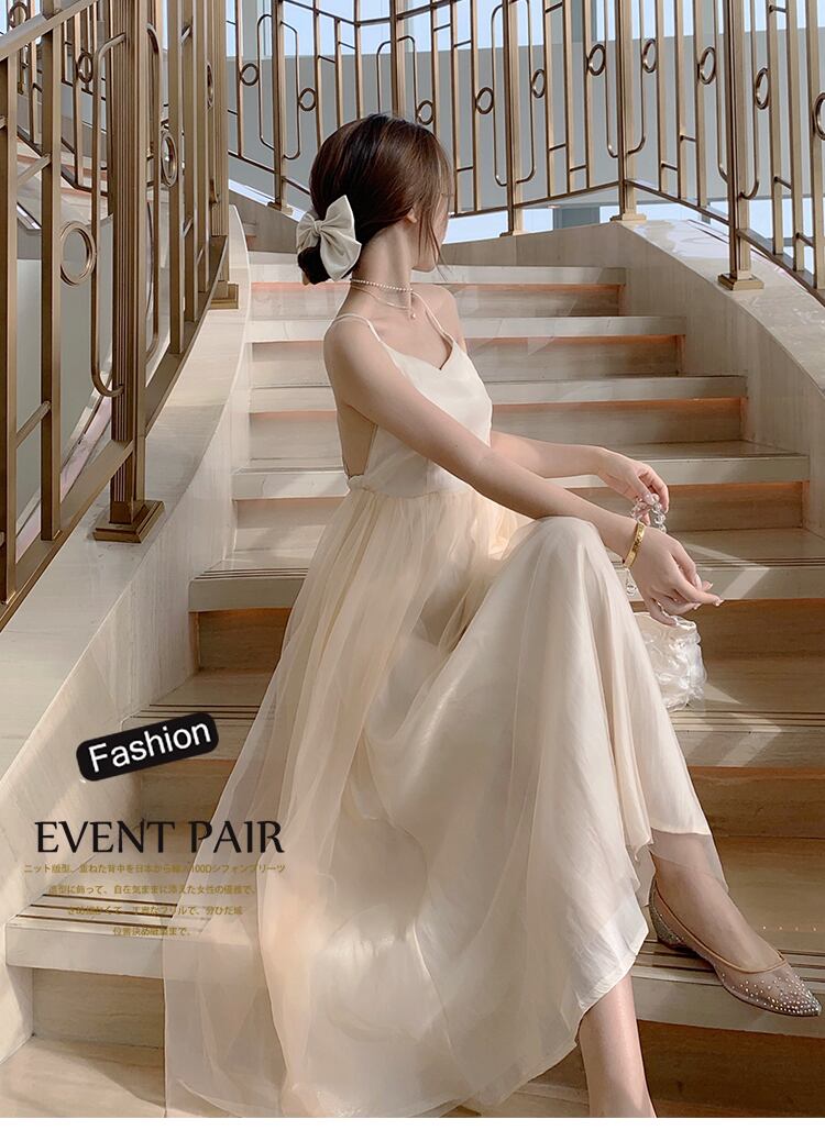 フレンチレトロバックレスサスペンダードレス女性夏ウエストスリム気質サスペンダードレス女性ホリデービーチスカート サマー 夏物 yingd52394011308