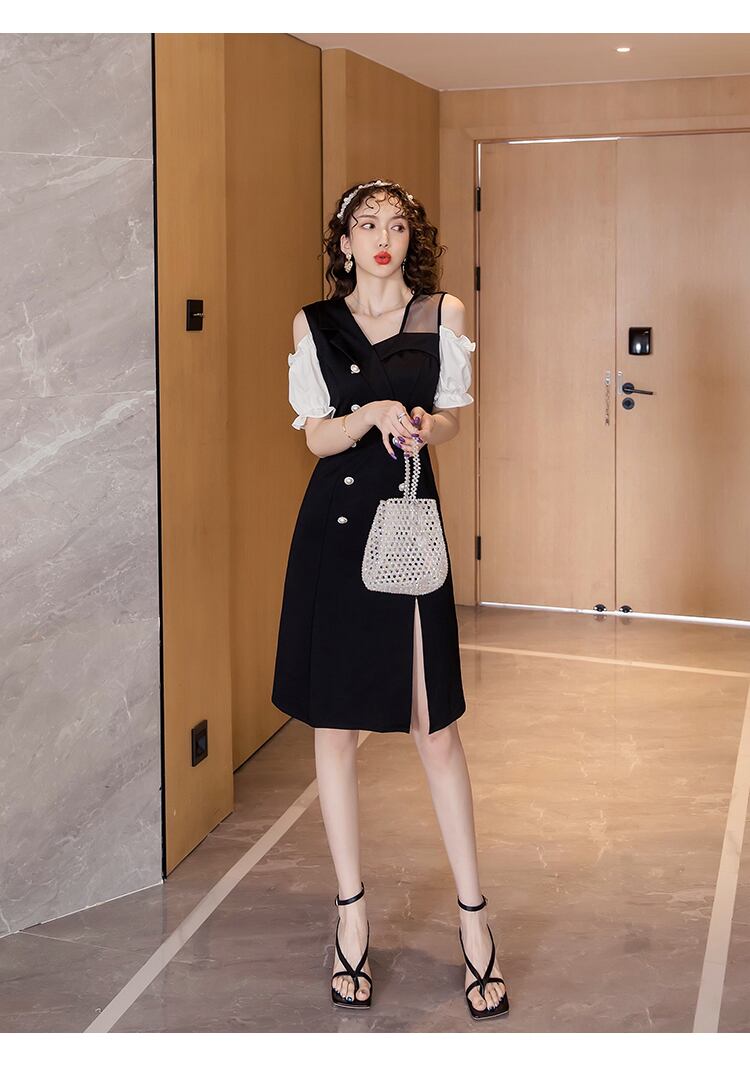 フランスのレトロな気質の女神ファンスプリットセクシーなドレス女性の夏のウエスト痩身人気のヘップバーンスタイルリトルブラックドレス サマー 夏物 yingd96578015915