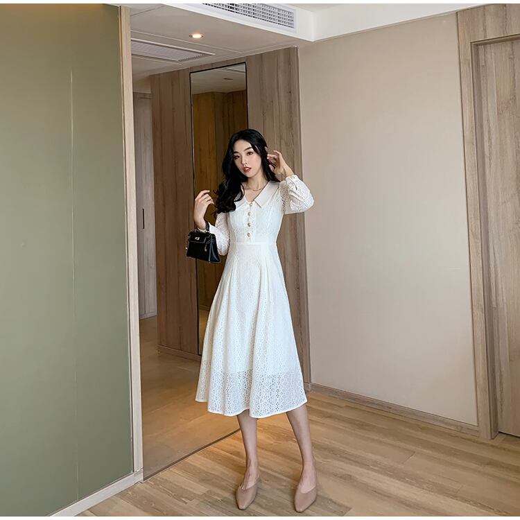 フランスのレトロなスーパーフェアリーセンシリーズウエストと薄い気質の女神ファンライトラグジュアリーレディース長袖レースドレス女性秋 ロング オータム 秋物 yingd70211530742