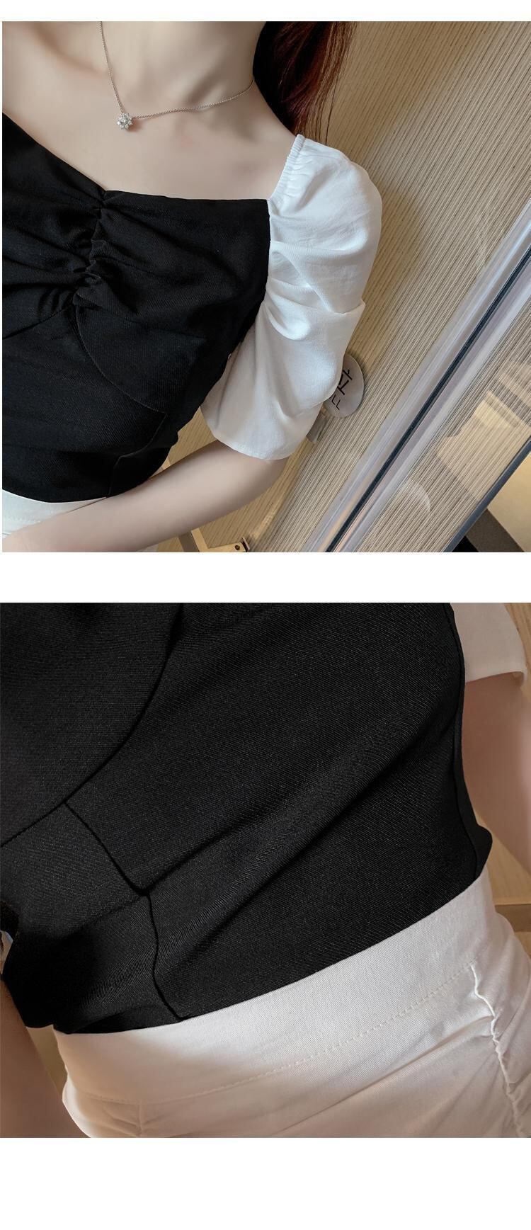 2020年夏の新作フレンチレトロセクシーオフショルダーショートトップレディースデザインセンススモールヒットカラーウエスタンスタイルシャツ サマー 夏物 yingd37493673708