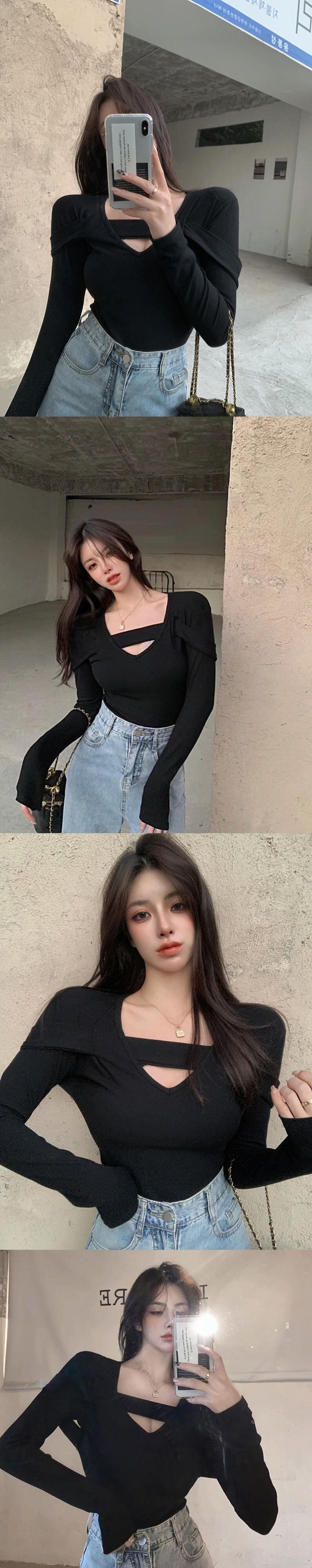 純粋な欲望スタイル、セクシー、エインスタイル、インナーボトミングシャツ、女性の早春、ハイエンドのデザインセンス、ニッチ、長袖ニットセーター、トップ、女性 ロング スプリング 春物 yingd69565966940