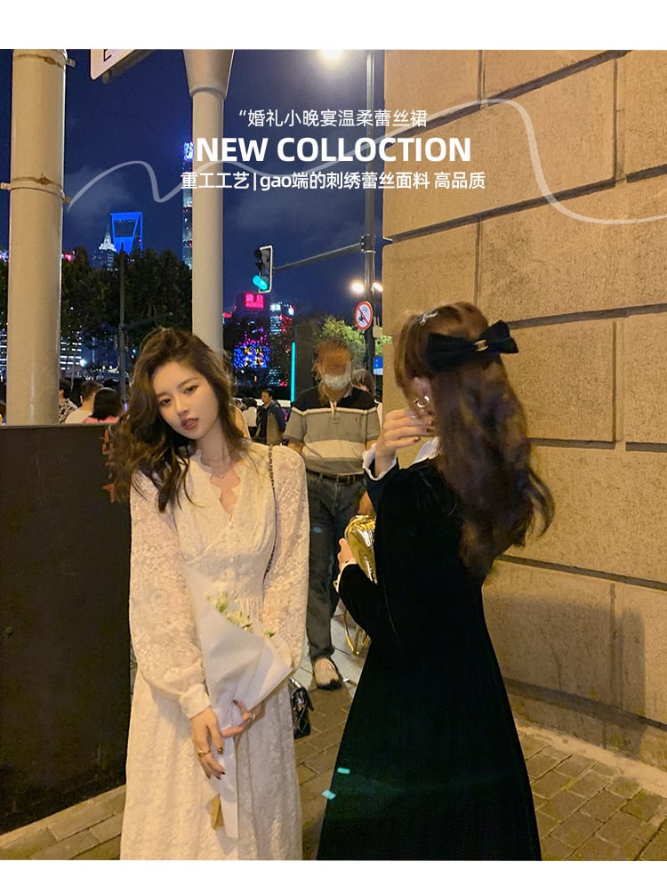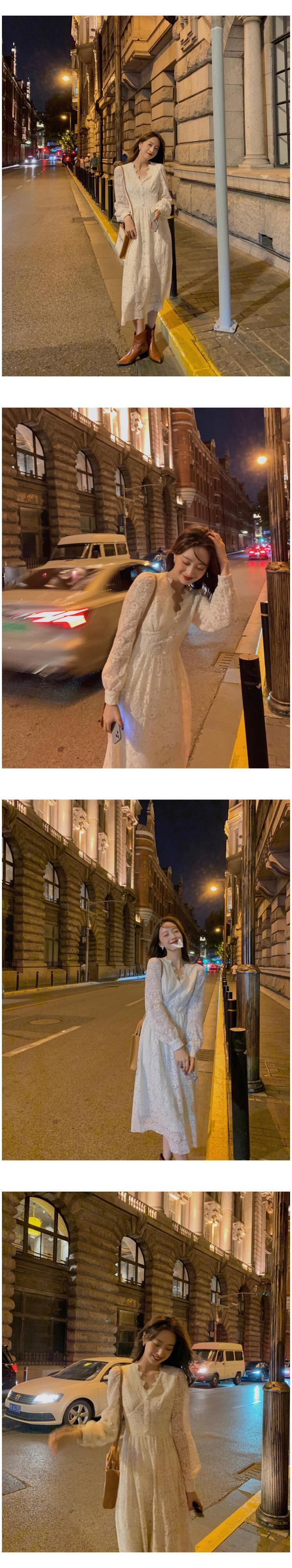 春服2021新しいフランスのニッチ穏やかな風ウエストスリム気質長い白いレースのドレスの女性 ロング ホワイト スプリング 春物 yingd66277768460