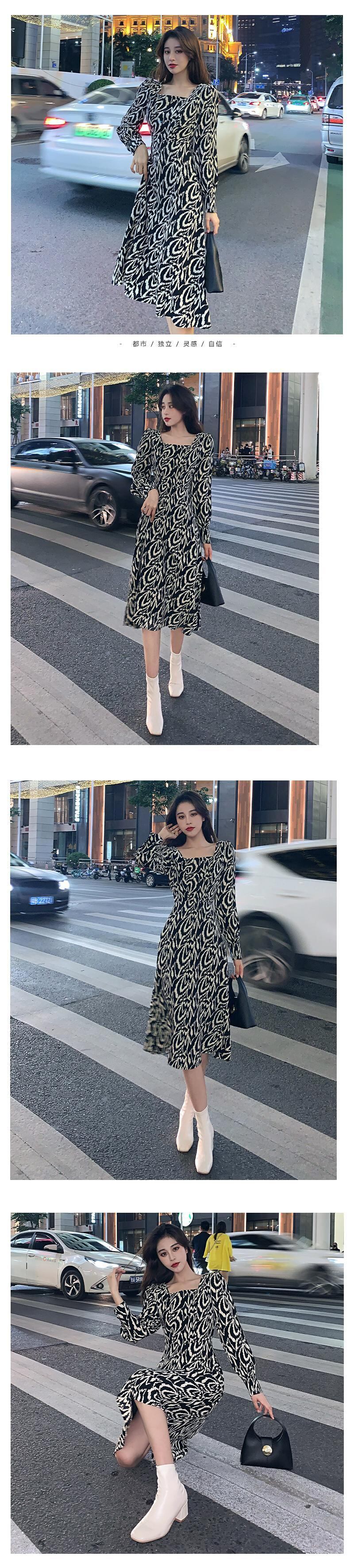 フランスのレトロなスクエアネックフローラルドレス、ウエストと薄い気質の長袖フローラルドレス女性の2021年春の新作 ロング スプリング 春物 花柄 スクウェア yingd34908579763