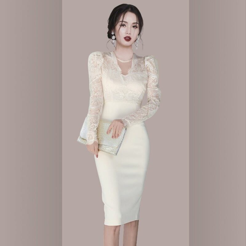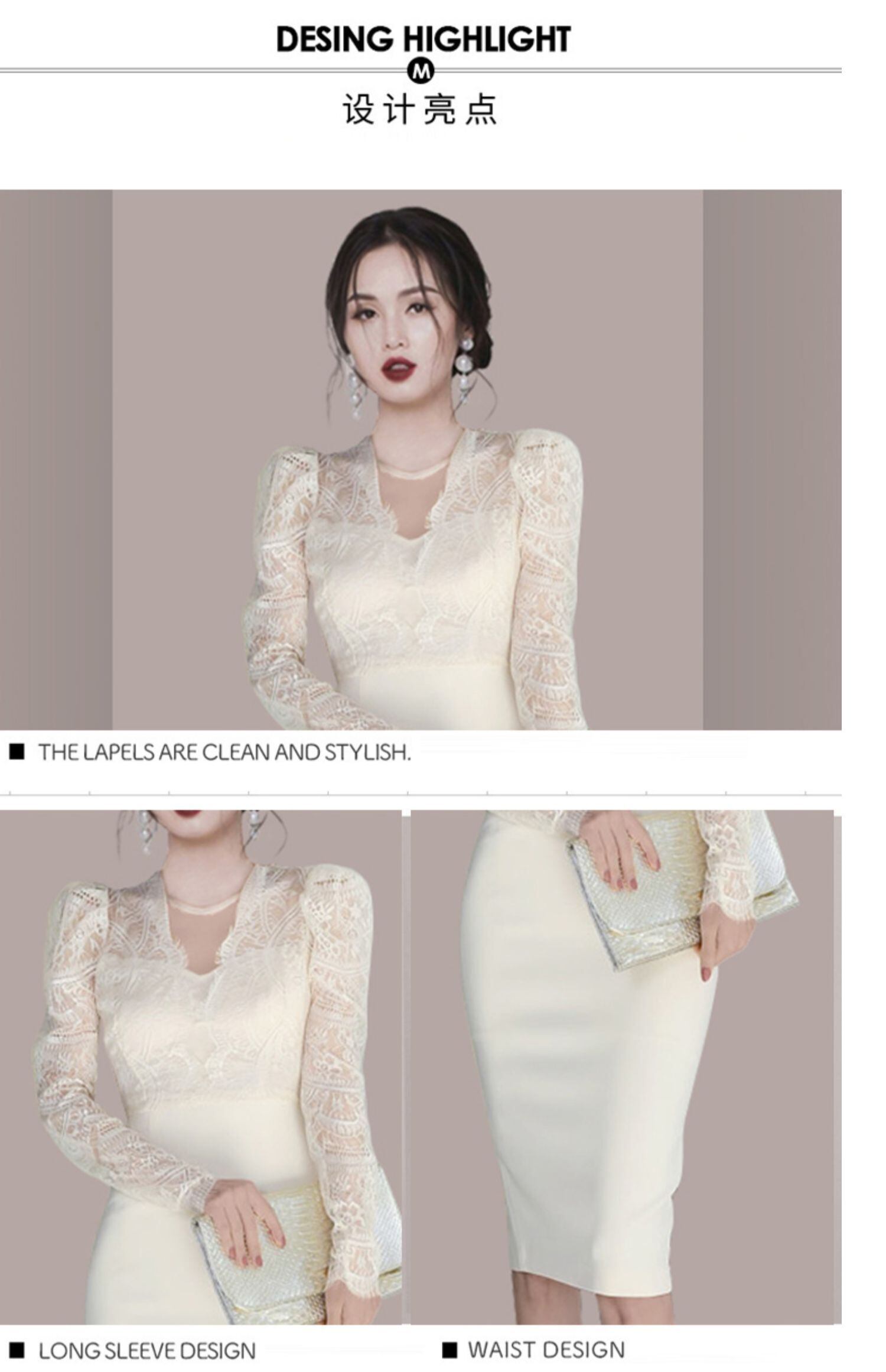フレンチレトロ気質レディースライトラグジュアリーデザインスカート優しい風タイトバッグヒップレースドレス女性秋冬 オータム 秋物 ウィンター 冬物 yingd48955612247