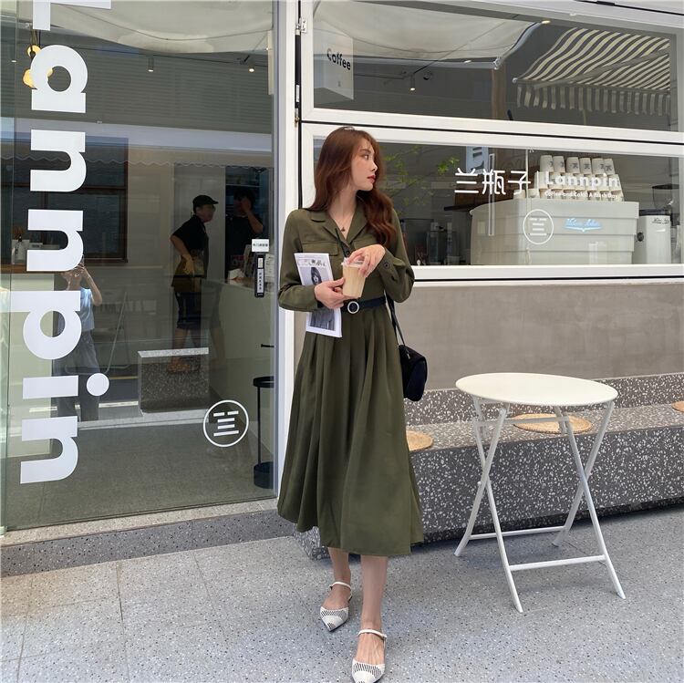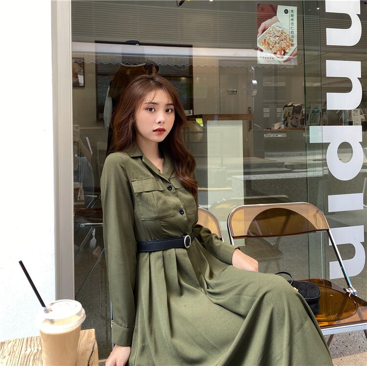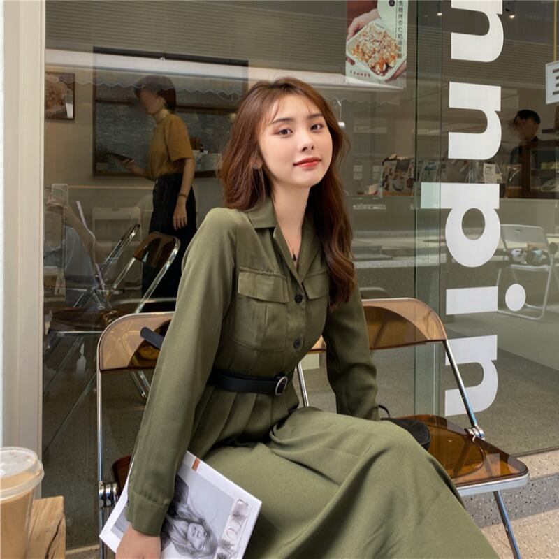 2020年秋新婦人服デザインセンスプリーツスカートウエストと薄手の気質長袖シャツドレス女性 ロング オータム 秋物 yingd31746278779