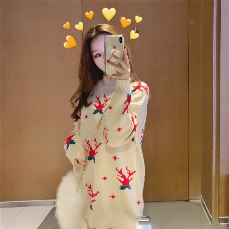 クリスマスセーターレディースルーズアウター2019秋冬ネットレッド怠惰風オールマッチプルオーバーボトミングセータートップ オータム 秋物 ウィンター 冬物 yingd73718312444