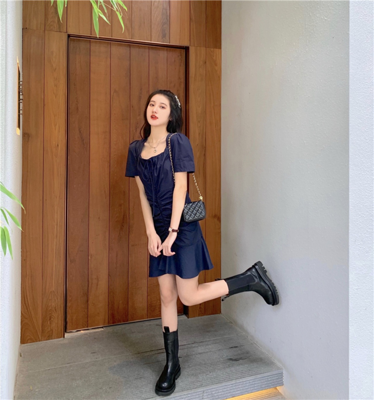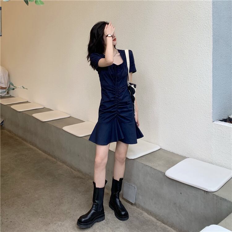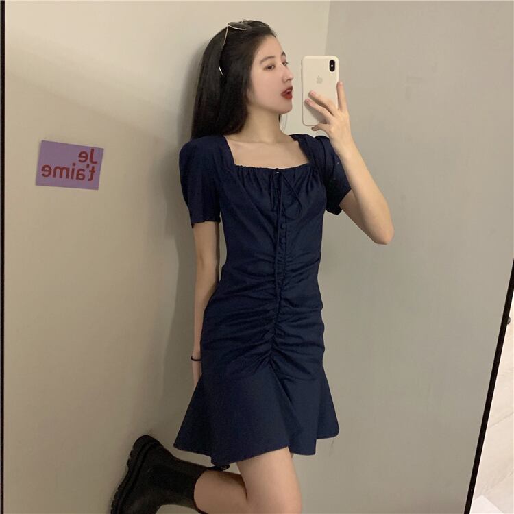 フランスのニッチ初恋ベルフラワースカート気質ウエストは薄いレトロなスクエアネックパフスリーブフィッシュテールドレス女性の夏でした サマー 夏物 フラワーデザイン スクウェア yingd96081725370