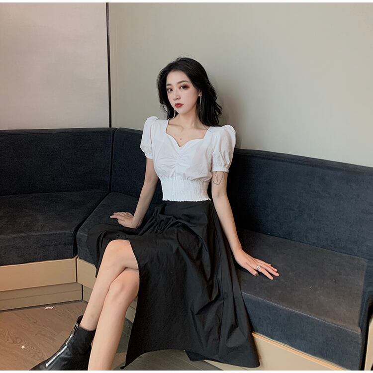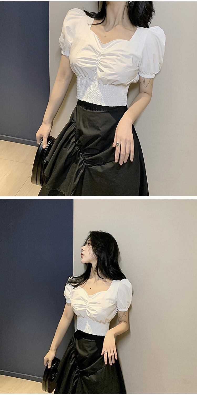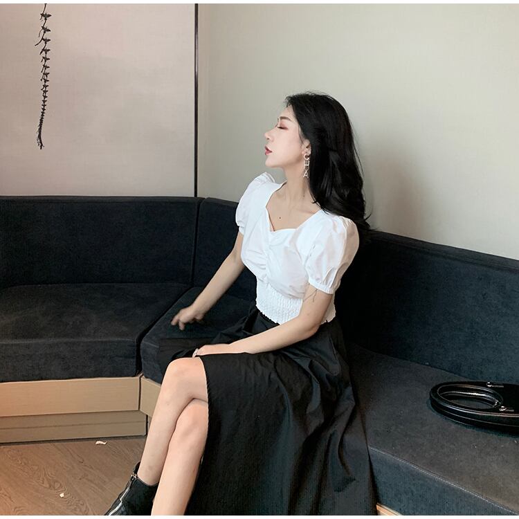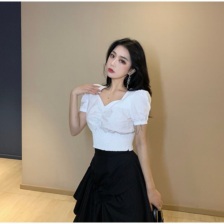 2020年夏の新しいレトロな香港スタイルの気質スクエアカラーパフスリーブショートトップレディースデザインセンスニッチシャツレディース サマー 夏物 スクウェア yingd14972616488
