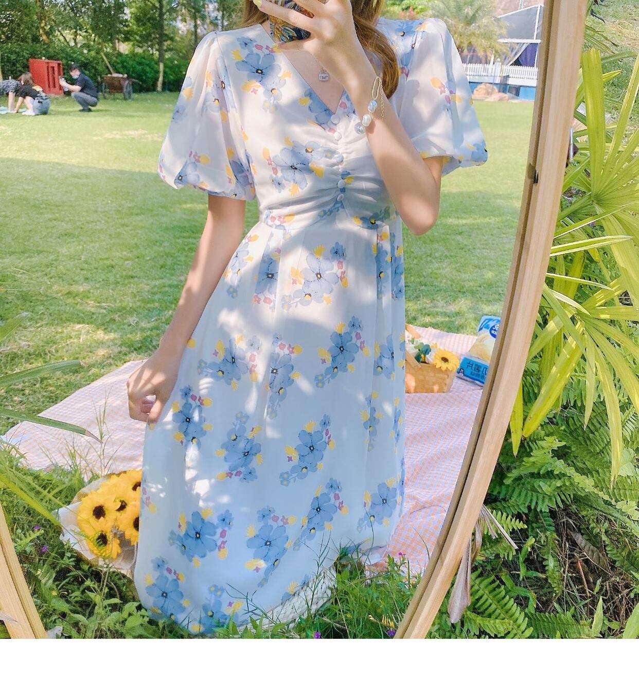 フランスのレトロなヘップバーンスタイルは、塩辛くて甘い花柄のドレスの女性の夏のウエストの細い気質の穏やかな風の妖精のスカートにすることができます 大人ガーリー スウィート キュート カジュアル サマー 夏物 yingd12402583000