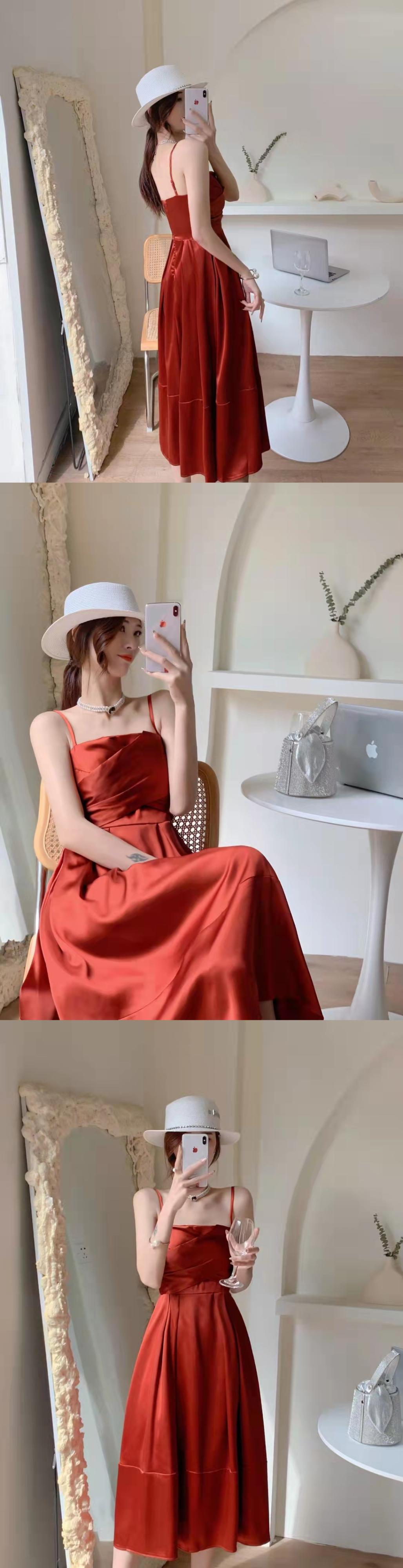 フランスのレトロなヘップバーンスタイルのサスペンダードレス2022年夏の新しいハイエンドの背中の開いた甘くてスパイシーなサスペンダードレスの女性 大人ガーリー スウィート キュート カジュアル サマー 夏物 yingd58921525847