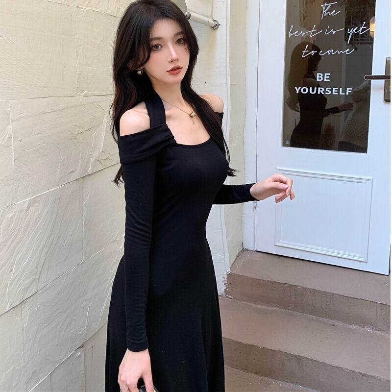 2022年初春ドレスレディースフレンチシックデザインハイエンドな軽快感セクシーなオフショルダーホルターネック見事なスカート スプリング 春物 スカート yingd6426565791