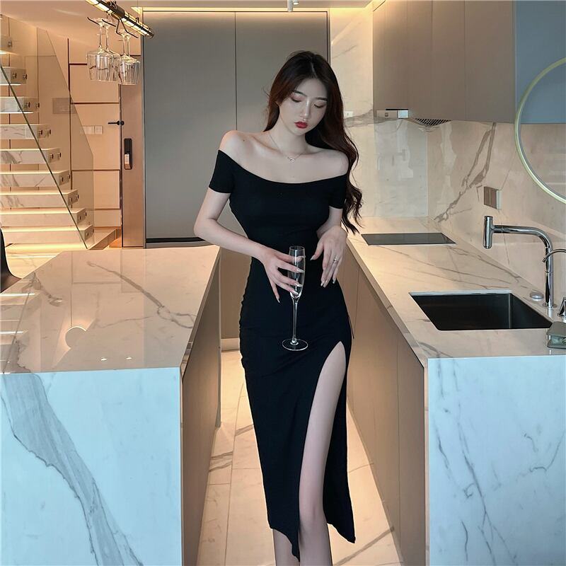 -終わり、見事な、シックな、ユニークなスカート、スリムフィット、スリムな気質、セクシーな背中の開いた、スプリット、ワンショルダードレス、女性 yingd55877614392