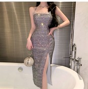 -終わり、見事な、ユニークな、スカート、スリム、スリム、気質、デザイン、ホルターネック、スパンコールドレス、女性の夏 サマー 夏物 yingd34628738490