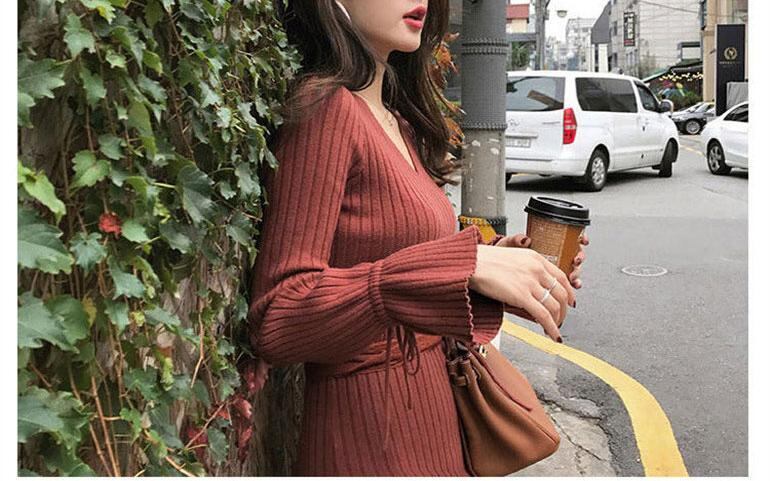 2019初秋新ネットレッド気質スリムスリムセータースカート女性の膝上ニットヒップボトミングドレス女性 オータム 秋物 yingd57333259684