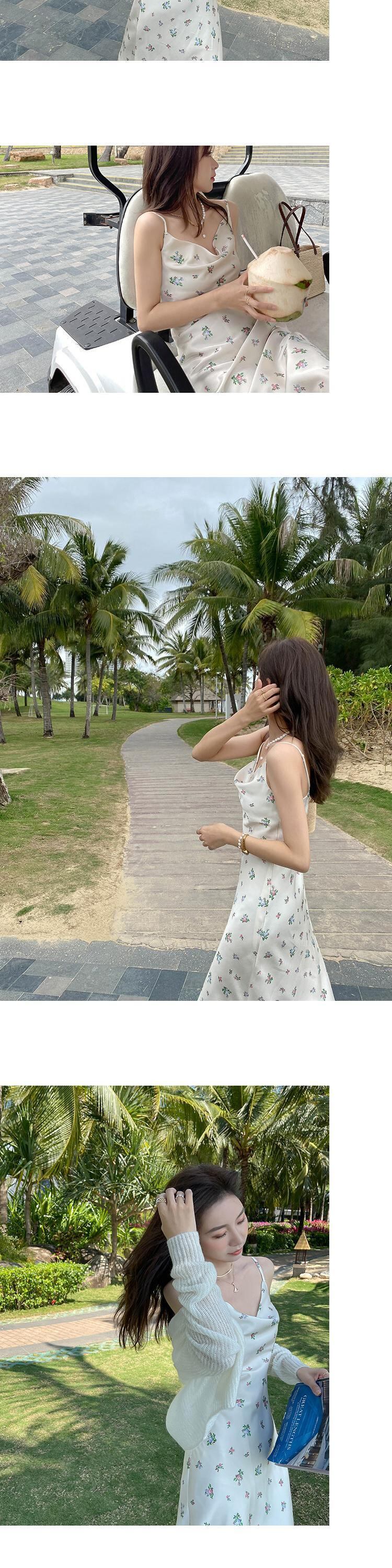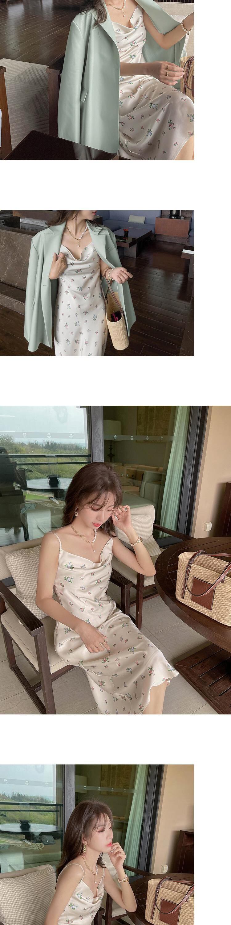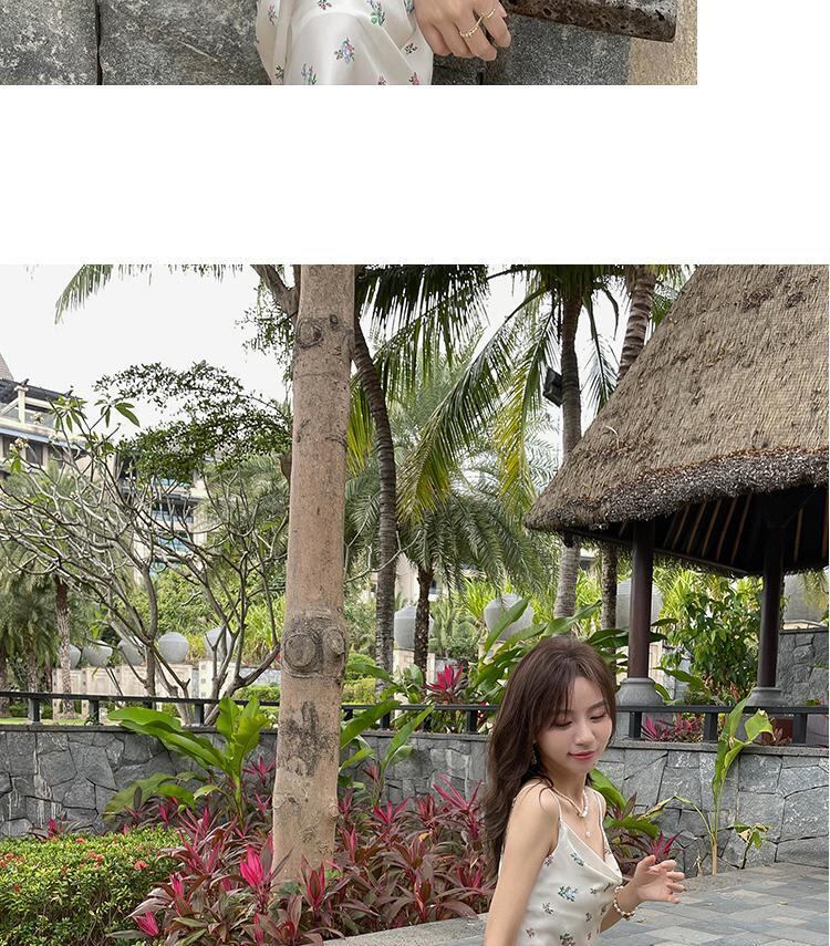 フランスの純粋な欲望スタイルのハイエンド見事なサスペンダードレスセクシーなスイングカラーフローラルサテンアセテートサスペンダードレス女性 花柄 ピュア yingd78580639330