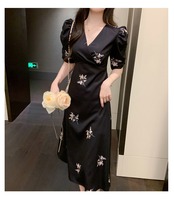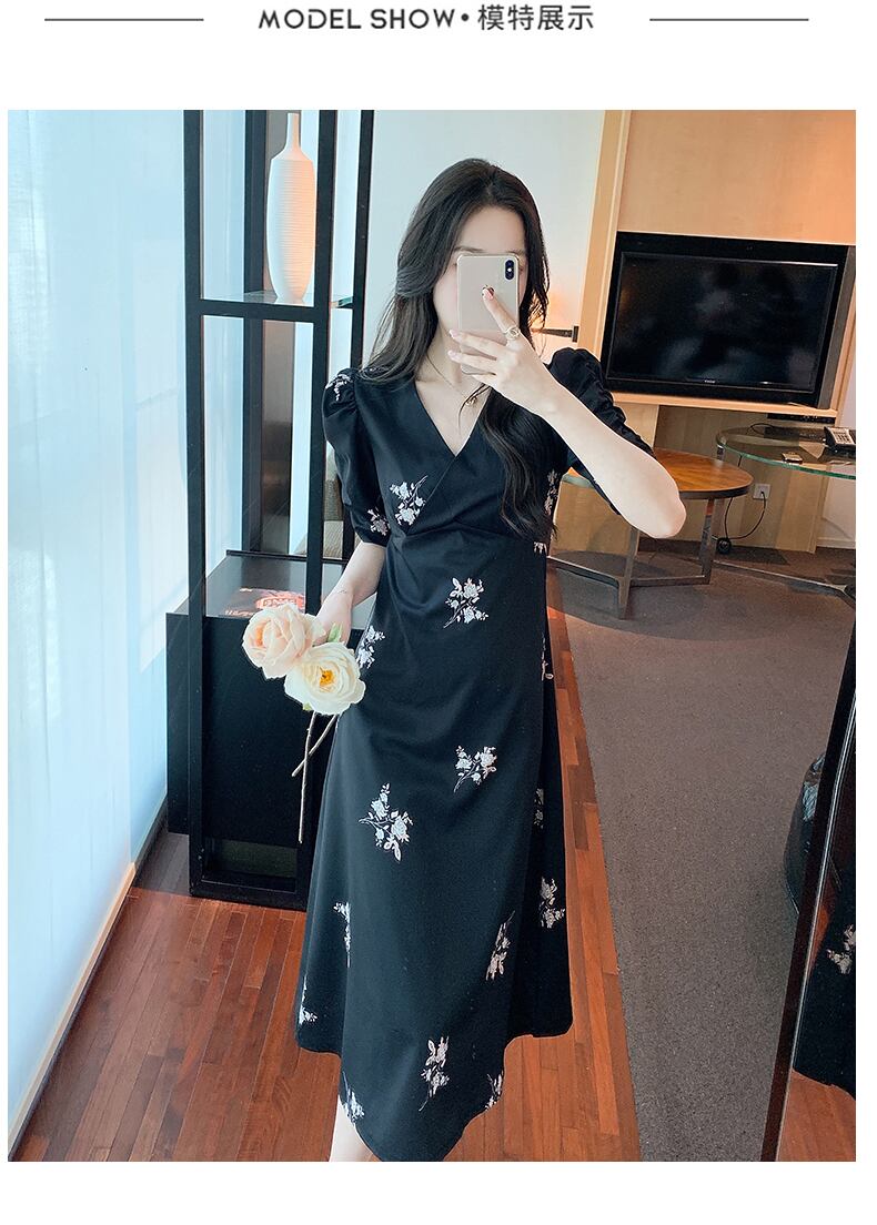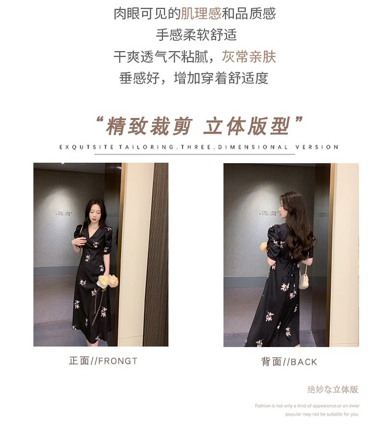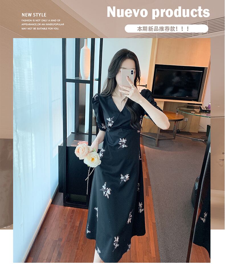 フランスのレトロなヘップバーンスタイルのパフスリーブドレス2022年夏の女性の新しいウエストと細い気質のVネックフローラルドレス サマー 夏物 花柄 yingd32185244075
