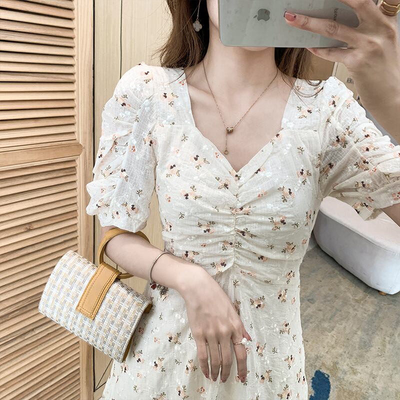 フランスのティーブレイク、シック、ハイエンド、見事な、ロングスカート、ウエスト、スリム、セクシー、背中の開いた、花柄のドレス、女性の夏 サマー 夏物 yingd89855785806