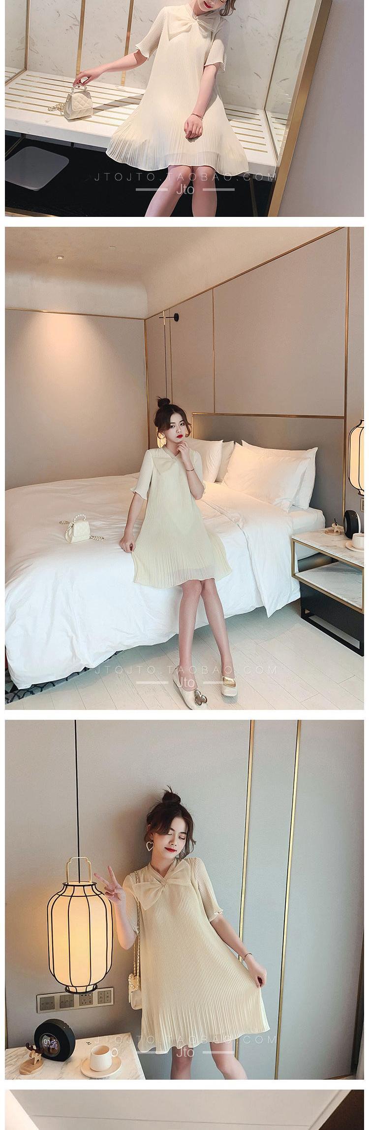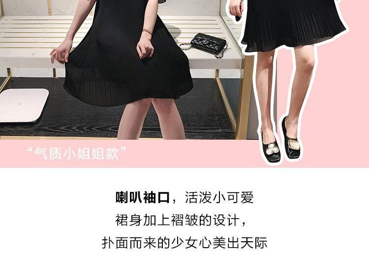 プリーツシフォンドレス女性2019年新夏バージョンルーズスーパーフェアリースウィートワードボトミングドールスカート 大人ガーリー キュート カジュアル サマー 夏物 yingd36731842492