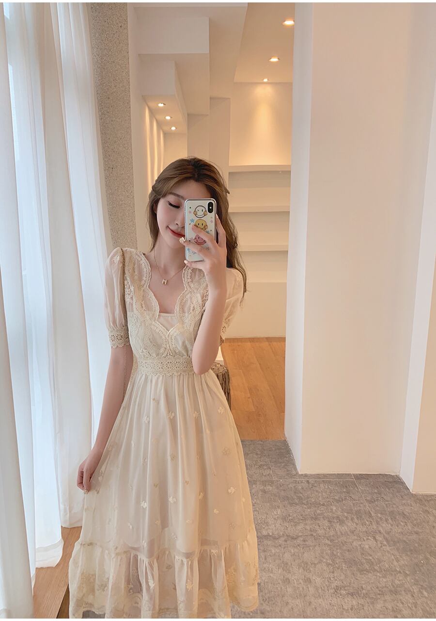 フランスのニッチな甘い初恋の妖精のロングドレス 大人ガーリー スウィート キュート カジュアル yingd25398814275