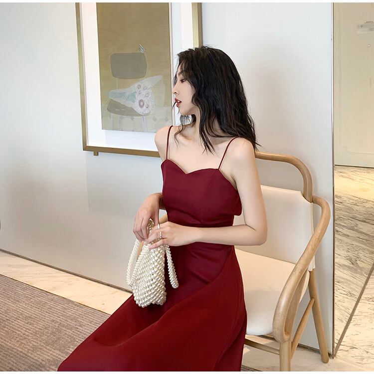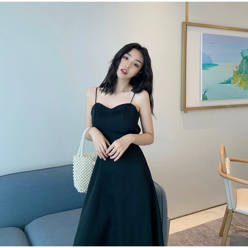 フランスのレトロなサスペンダースカート、高品質の質感、ウエスト、薄い気質、セクシーな背中の開いたサスペンダードレス、女性の夏 サマー 夏物 yingd71198393370