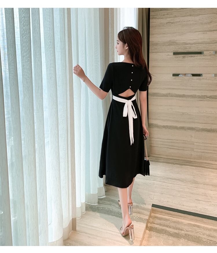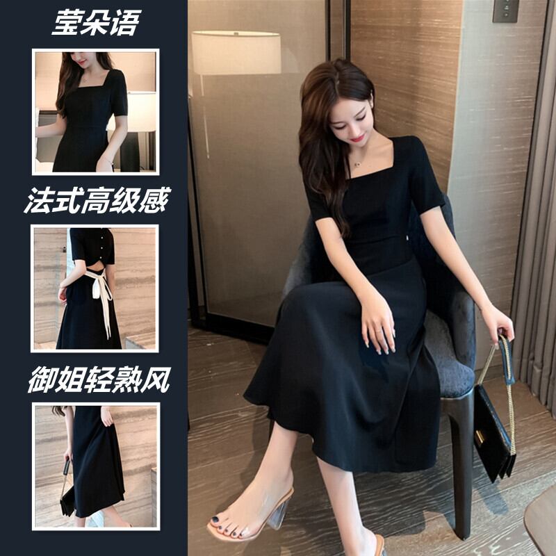 -終わり、見事な、ユニークな、スカート、ウエスト、薄い、気質、セクシーな背中の開いた、レトロなスクエアネックのドレス、女性の夏 サマー 夏物 スクウェア yingd9616424933
