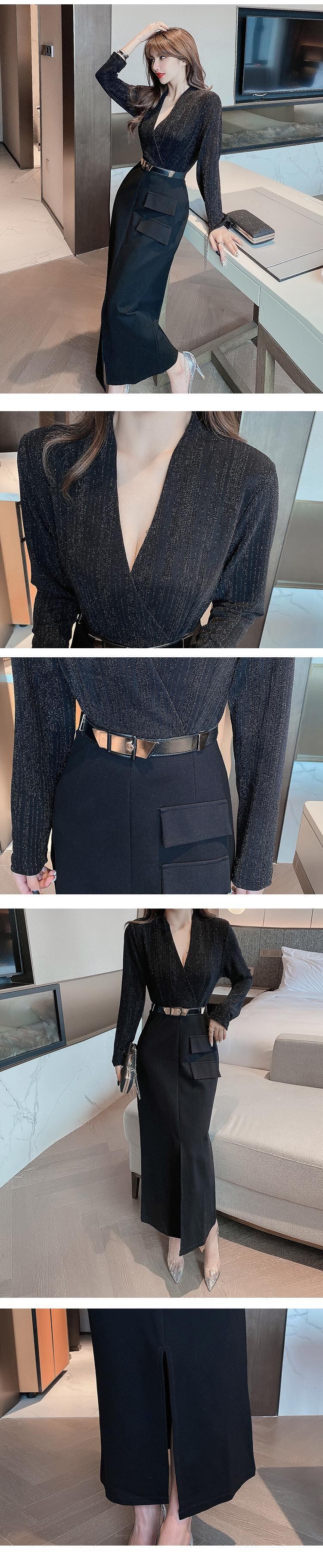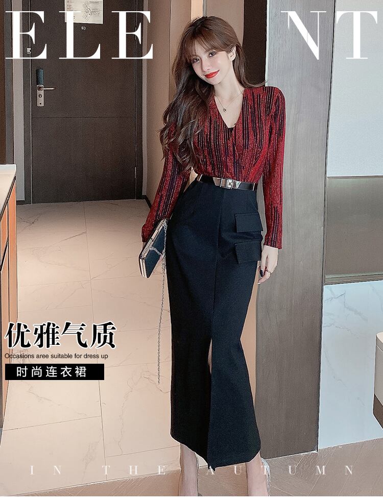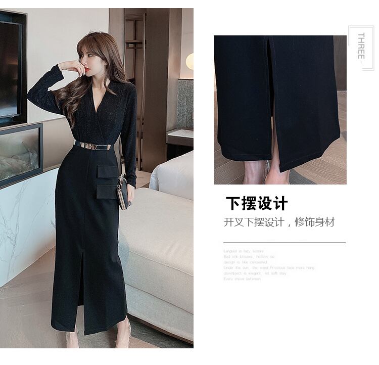 フランスのレトロなライトラグジュアリーデザインスカートライト成熟した風ウエストスリム気質女性スプリットロングスカートドレス yingd8893422239