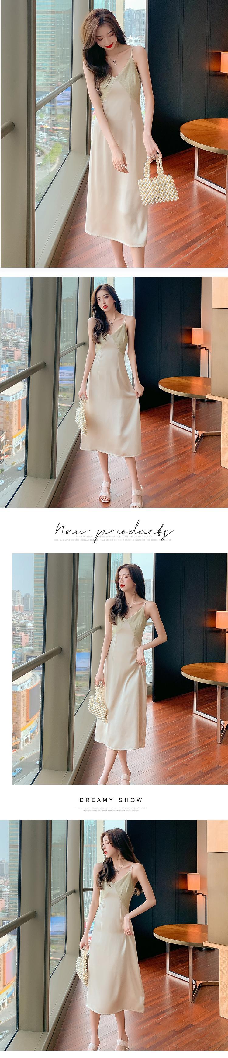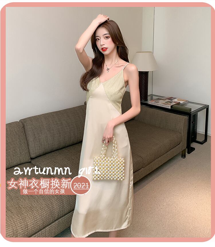 シックなハイエンドの見事なサスペンダードレススリムフィットと薄い気質のデザインステッチサスペンダードレス女性の夏 サマー 夏物 yingd84162323425