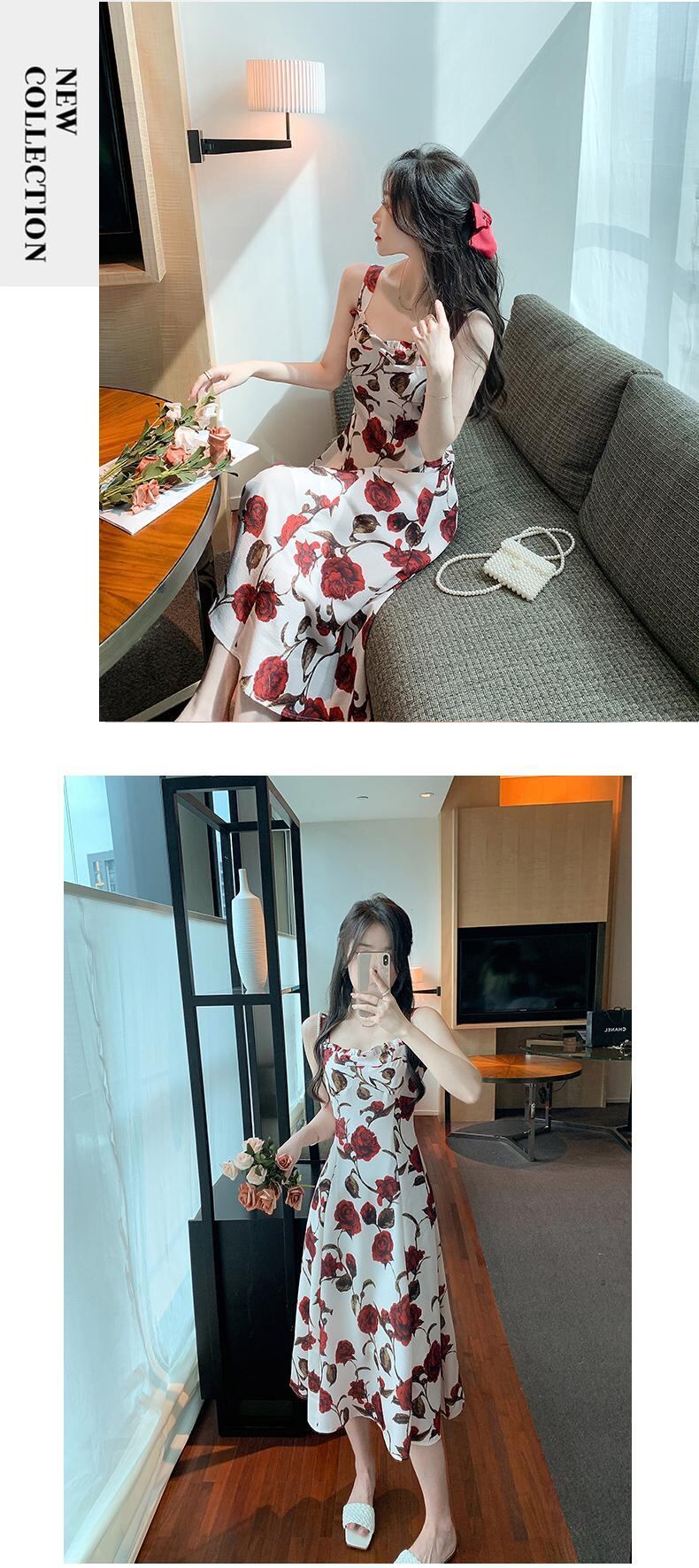 フランスのレトロな花柄サスペンダードレス女性2022年夏新しいハイエンド見事なバラの花柄サスペンダードレス サマー 夏物 yingd13179552897