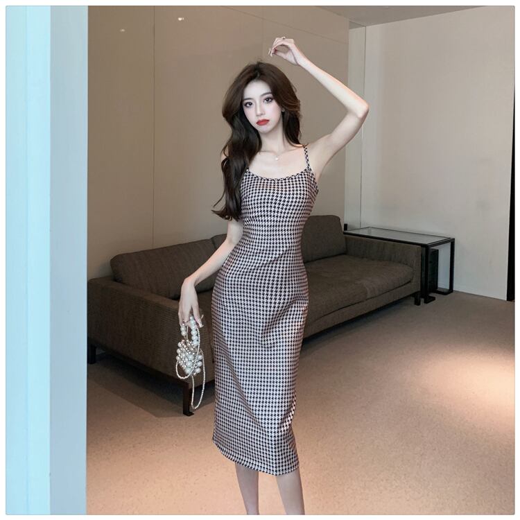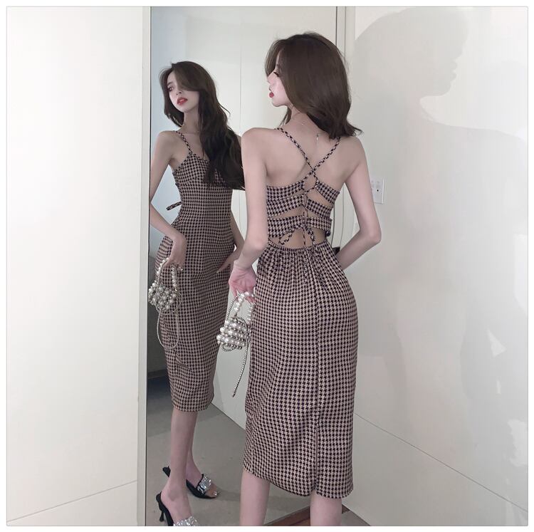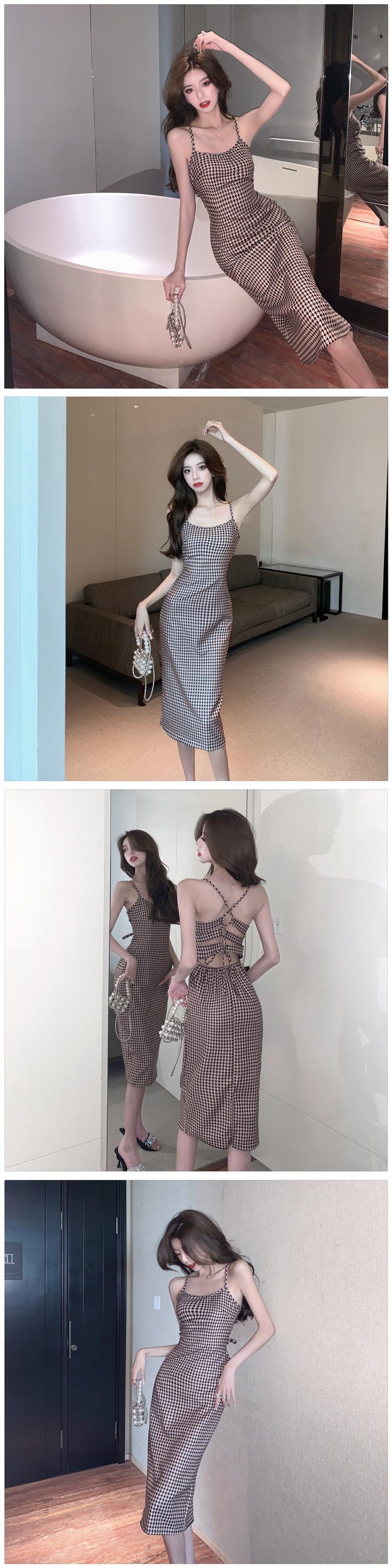 -終わり、見事な、ユニークなスカート、スリムフィット、スリムな気質、セクシーな背中の開いた格子縞のサスペンダードレス、女性の夏 サマー 夏物 yingd81864701108