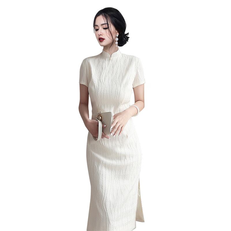 フランスの女性が見事なロングスカートスリムスリム気質ハイエンド冷風改良チャイナドレス女性夏 サマー 夏物 yingd82524808137
