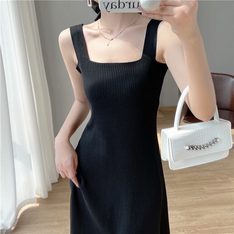 フランスのレトロシックなサスペンダースカートの質感高品質なセンスウエスト薄いアイスシルクニットサスペンダードレス女性の夏 サマー 夏物 yingd53659449214