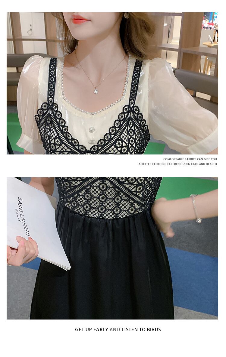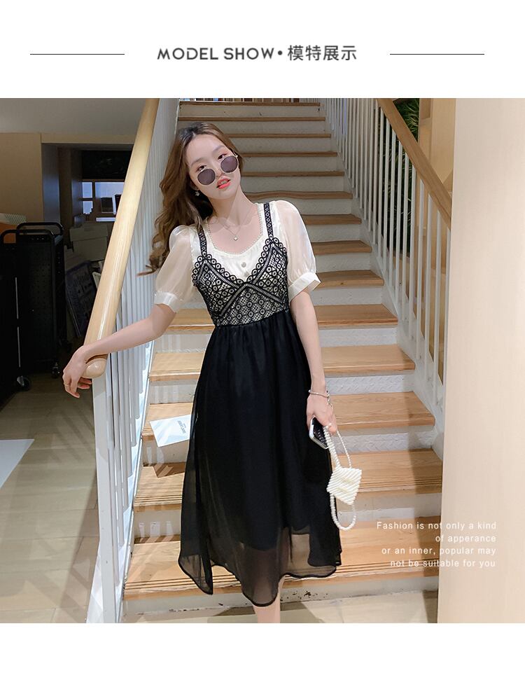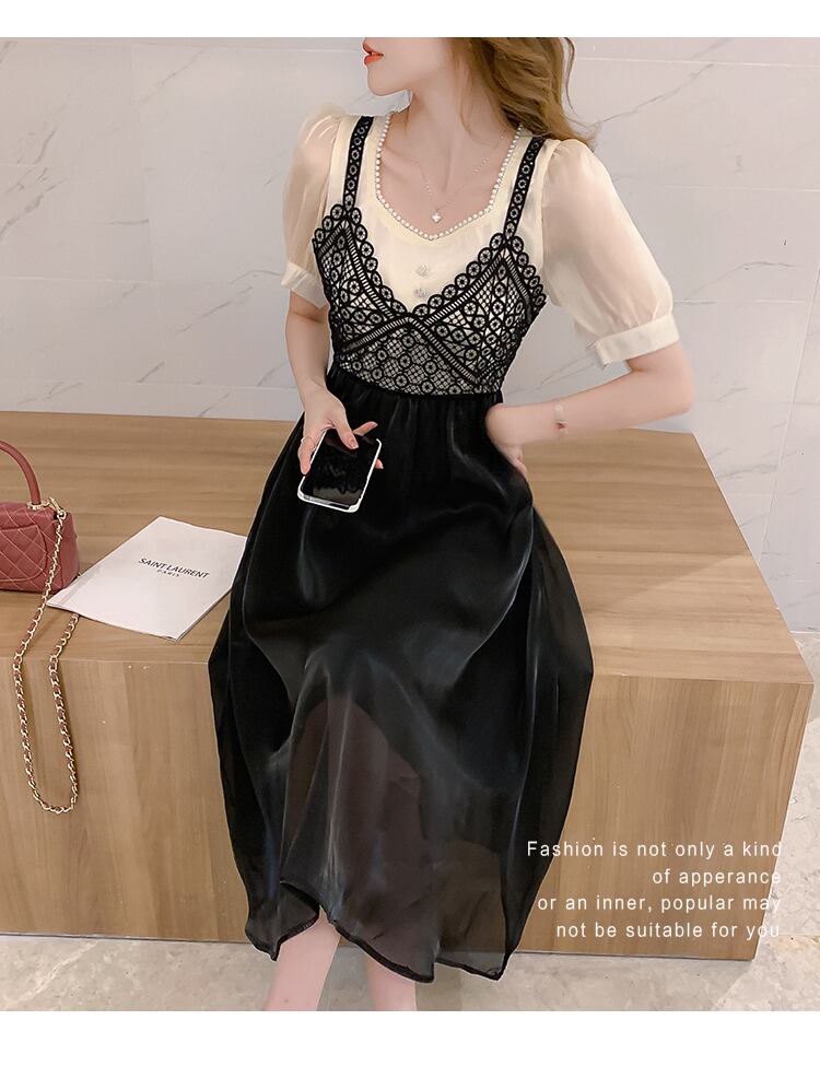 フランスのレトロなヘップバーンスタイルのロングドレスの夏は、塩辛い甘くて甘い気質の小さなスカートの偽のツーピースステッチドレスの女性にすることができます 大人ガーリー スウィート キュート カジュアル サマー 夏物 yingd24501438421