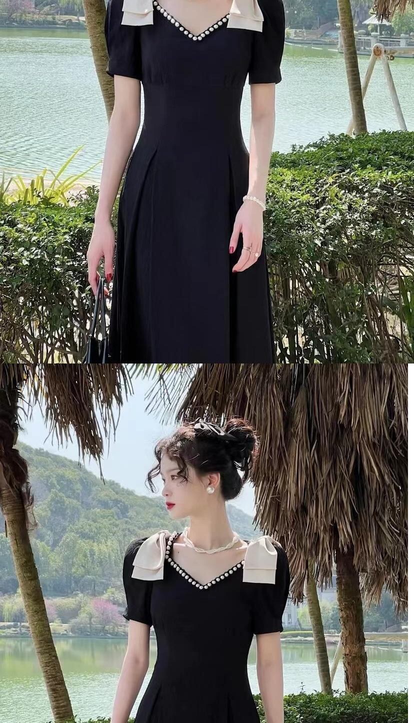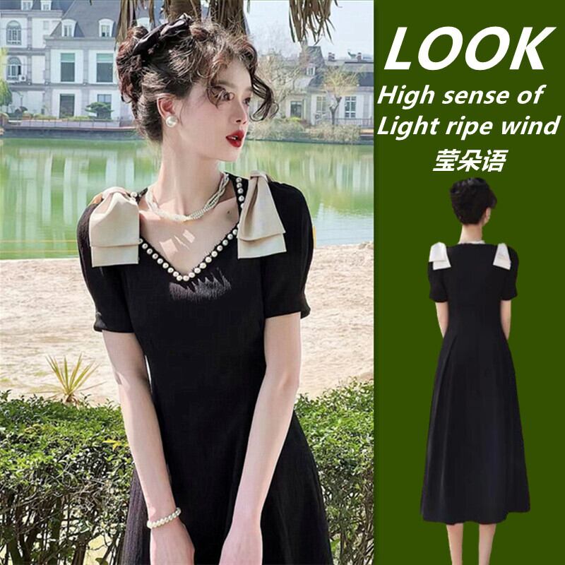フランスのレトロシックなユニークなスカートの質感ハイエンドセンスウエスト薄い気質見事なドレス2022新しい yingd32349433517