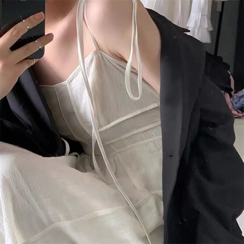 フランスのニッチな優しい初恋の妖精サスペンダードレスシックなデザインハイエンドの白いサスペンダードレス女性の夏 ホワイト サマー 夏物 yingd72989417262