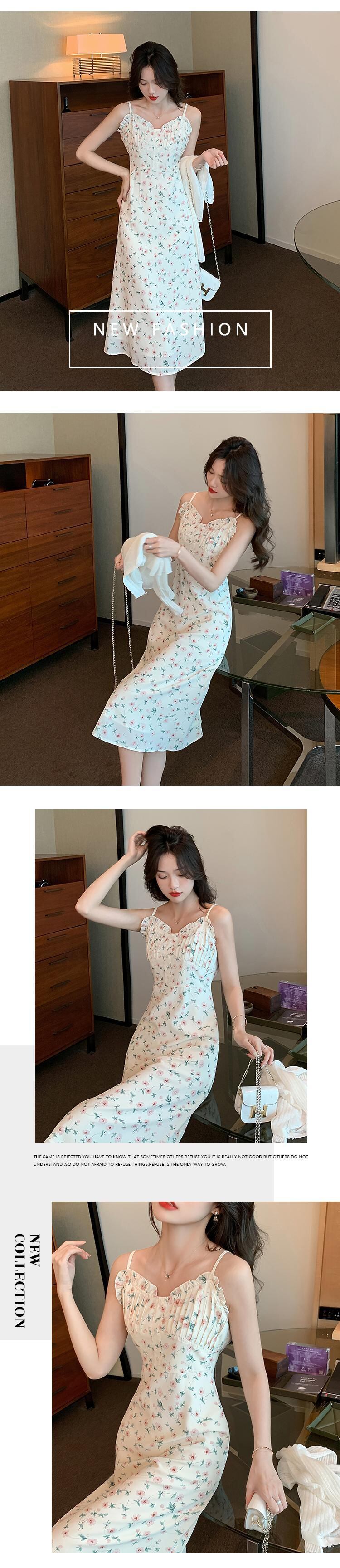 フランスの優しいスタイルのティーブレイク壊れた花のスリングドレスウエストスリム気質ハイエンドスリングドレス女性の夏 サマー 夏物 フラワーデザイン yingd63006341641