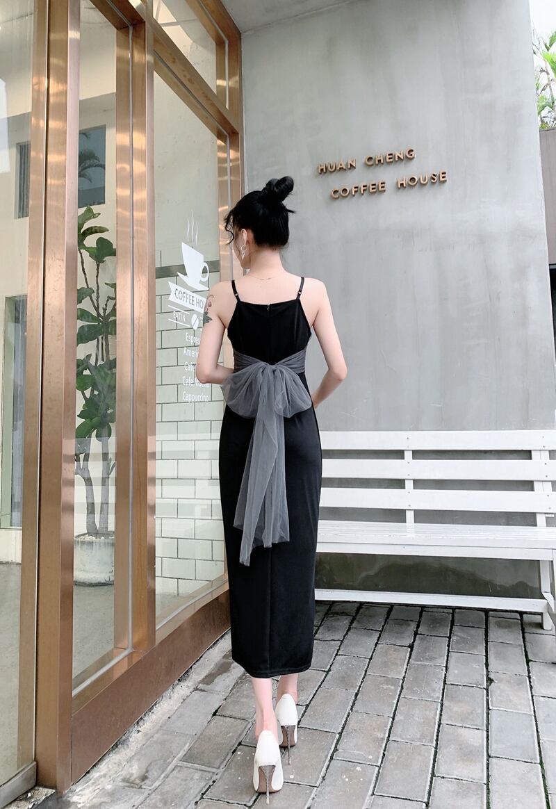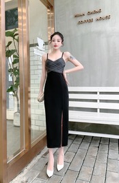 フランスのハイエンドシックでユニークなスカートウエストスリム気質見事なメッシュステッチサスペンダードレス女性の夏 サマー 夏物 yingd84291623670
