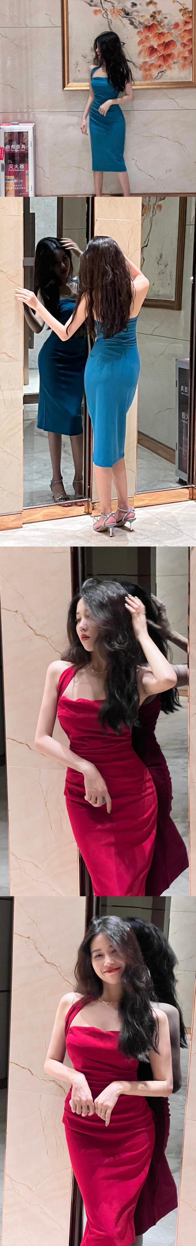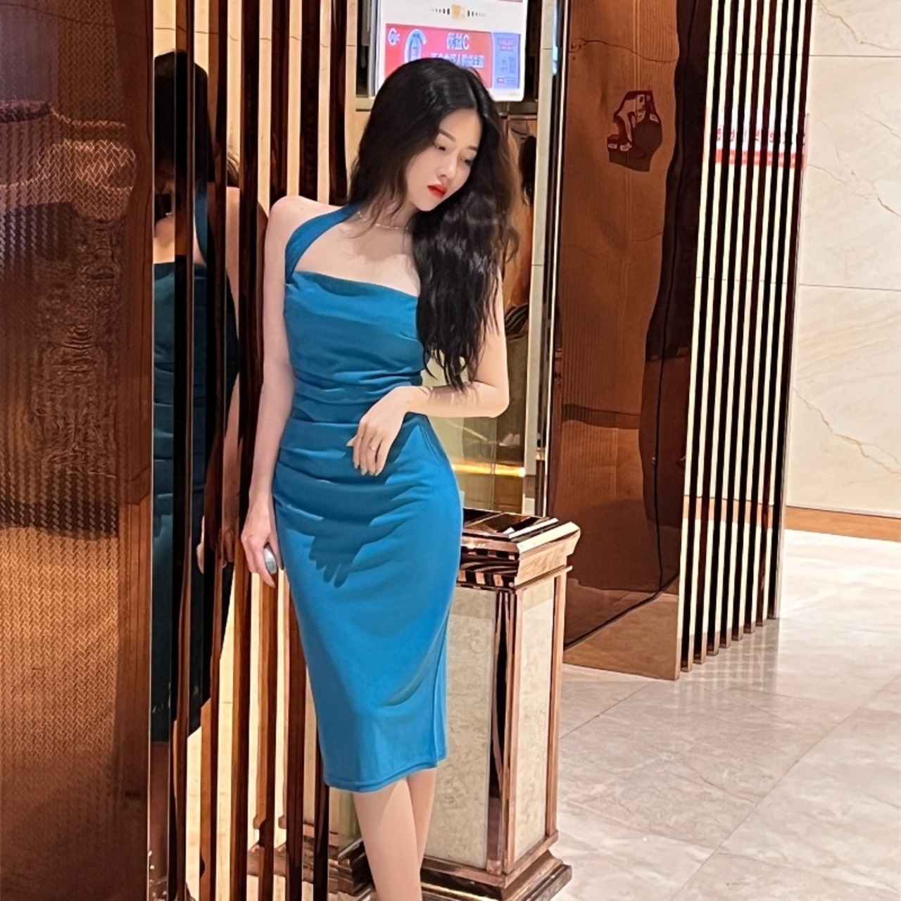 フランスのレトロなスカートの女性のデザインセンスニッチウエストスリム気質セクシーな背中の開いたホルタードレス女性の夏 サマー 夏物 yingd82073230543