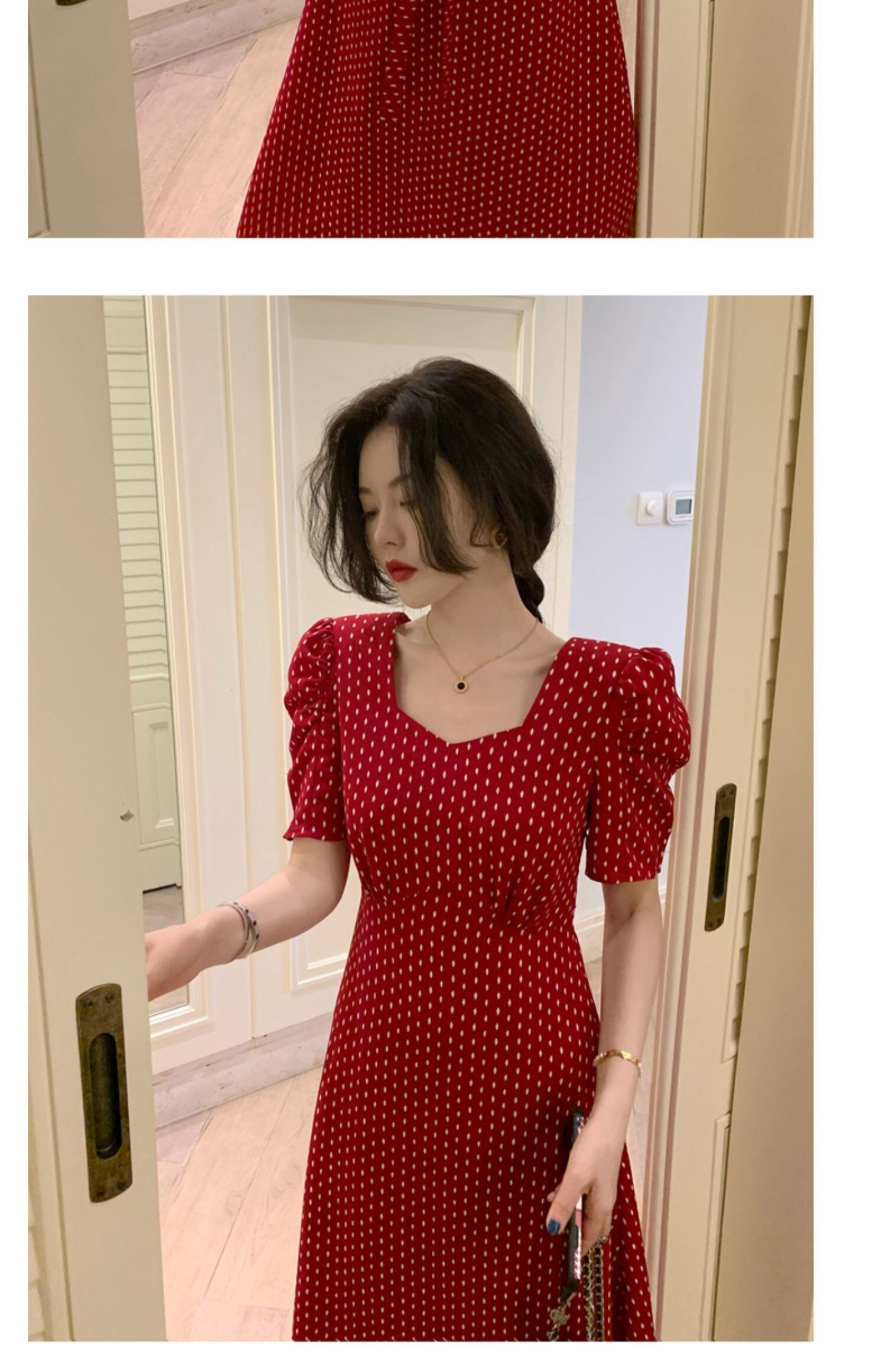シックでユニークな見事な水玉ロングスカート女性の夏のハイエンドセンスロイヤルシスターウエストスリム気質パフスリーブドレス サマー 夏物 yingd66512302846