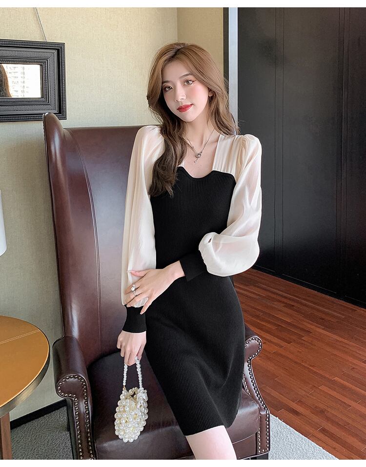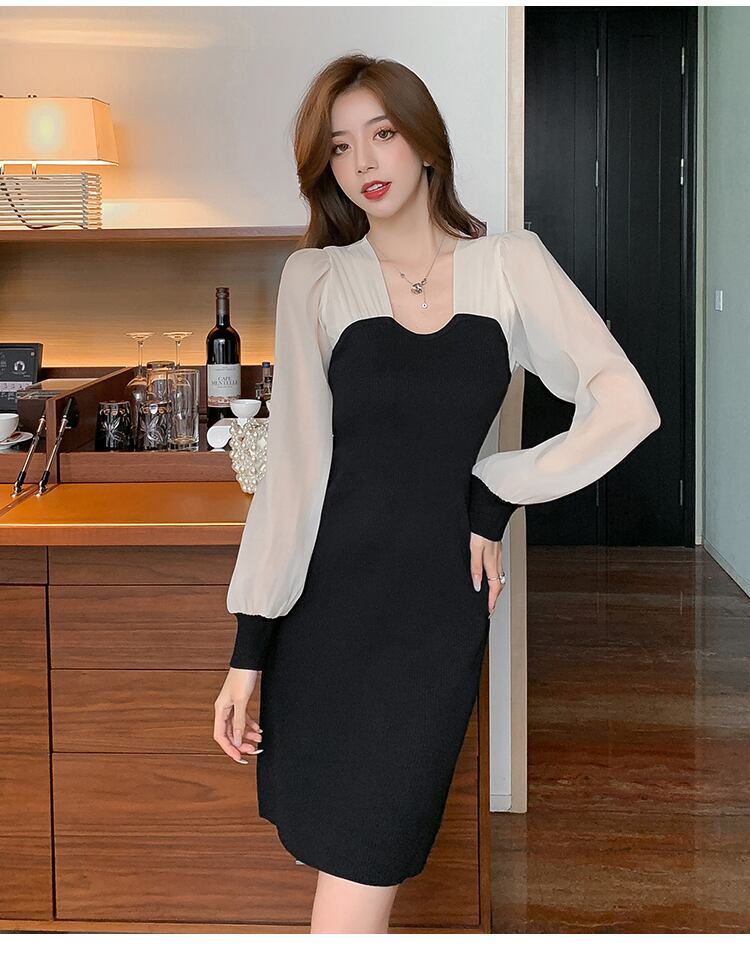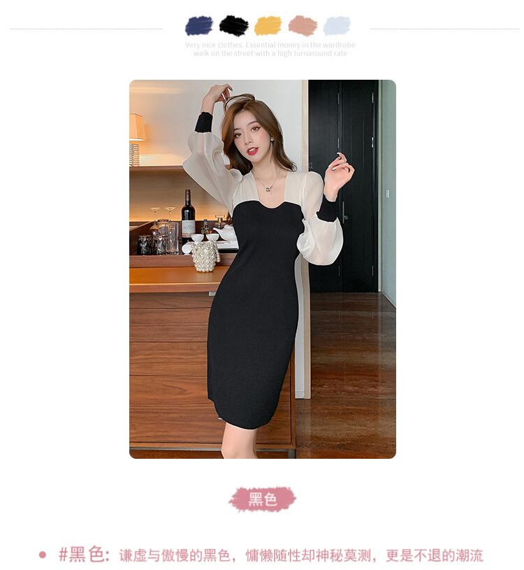 2021年初秋の新しいスタイルのウエストと薄い気質の女神ファンセクシーなバッグお尻メッシュステッチニットドレス女性 オータム 秋物 yingd52318856415