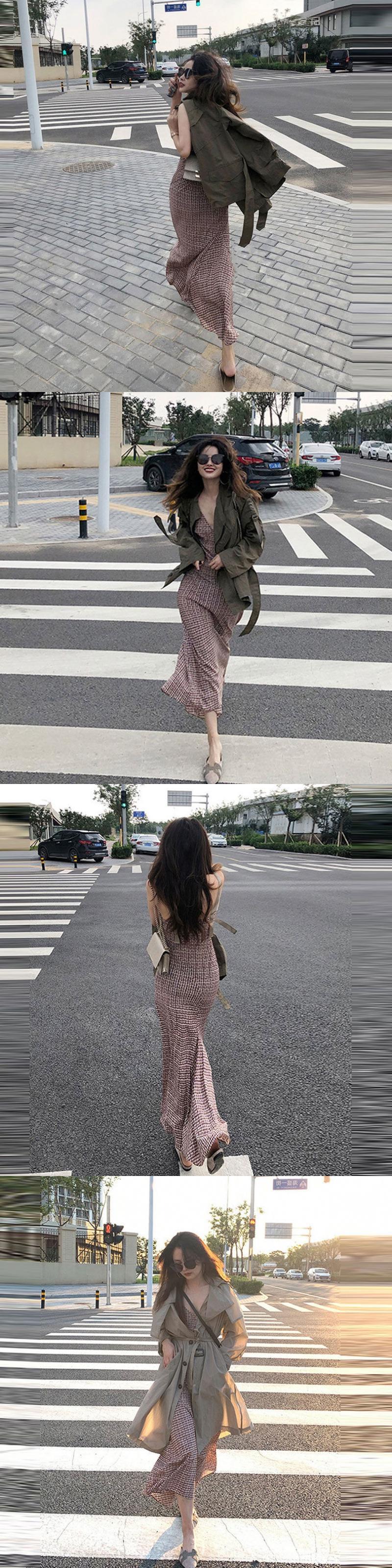 フランスのレトロなロイヤルシスターライトおなじみのスタイル見事なロングスカートの質感ハイエンドセンスウエスト薄いサスペンダードレス女性の夏 サマー 夏物 yingd84374334274