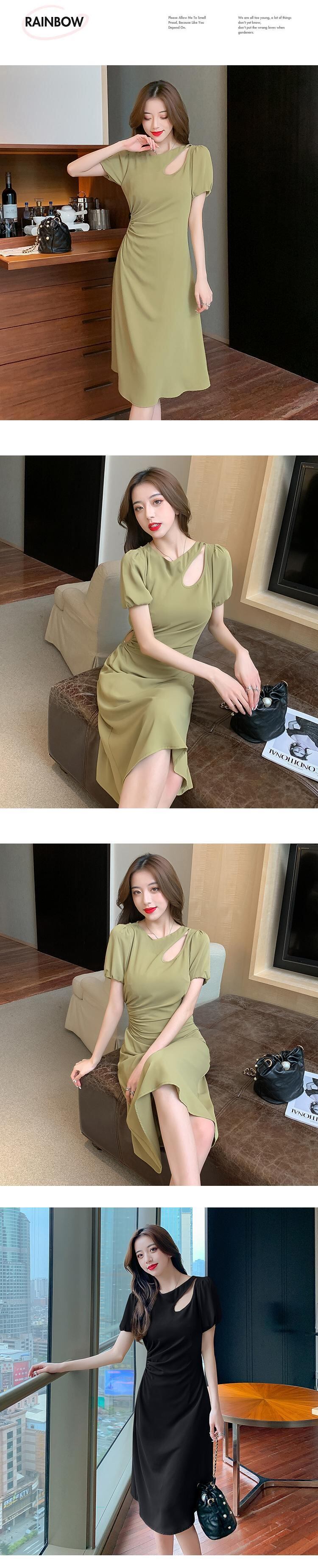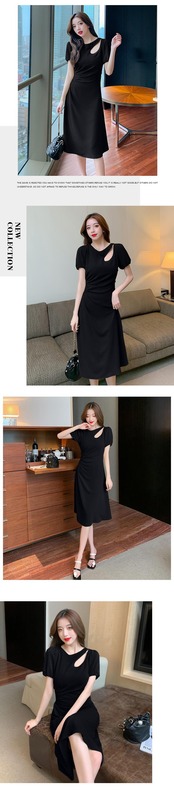 香港スタイルのレトロシックなスカートの質感ハイエンドセンスロイヤルシスターデザインセンスくぼみ慎重なマシンウエストドレス女性の夏 サマー 夏物 yingd64782886220