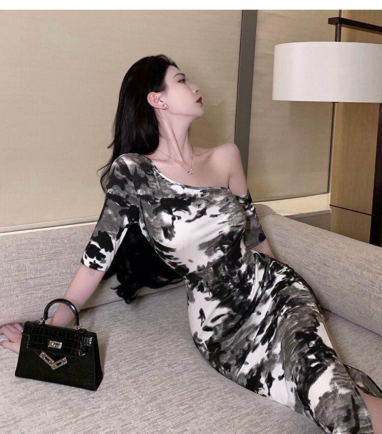 フランスのレトロシックなユニークなスカートの質感高品質のロイヤルシスターセクシーなオフショルダーバッグヒップ見事なドレス女性の夏 サマー 夏物 yingd67618873916