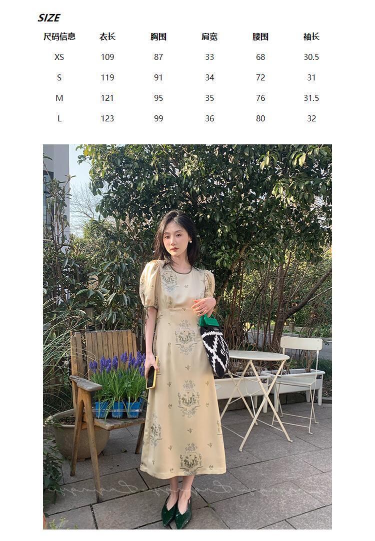 フレンチティーブレイクベルフラワーファーストラブロングスカートテクスチャー品質のサテンプリントパフスリーブドレス2022 フラワーデザイン yingd8765542125
