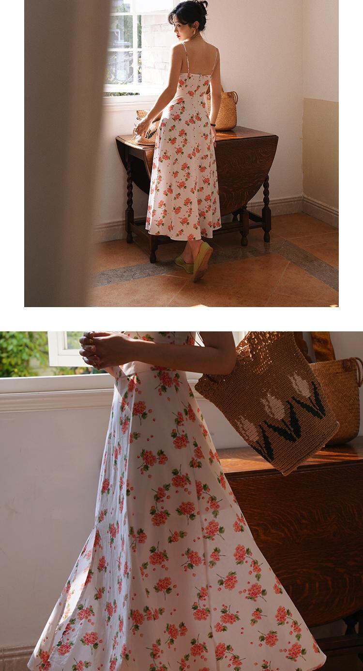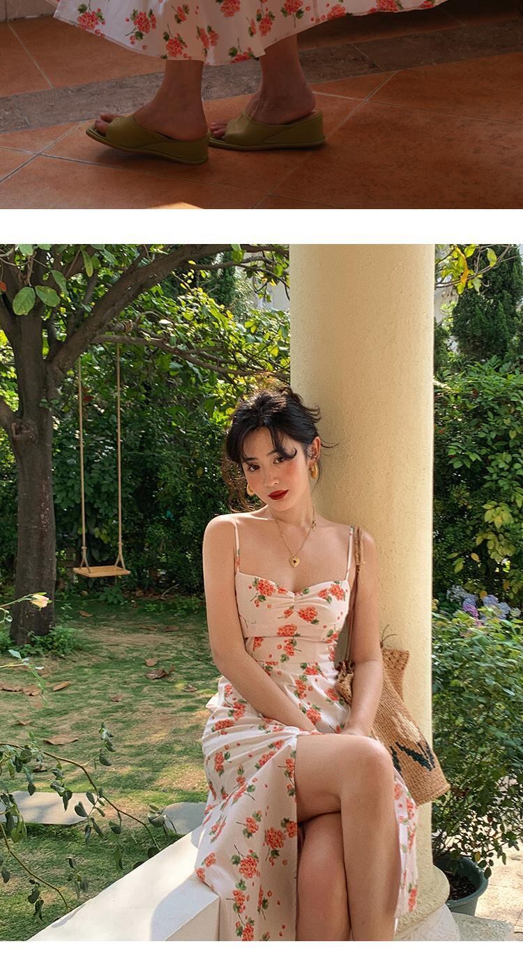 フランスのレトロなティーブレイクフローラルサスペンダードレス女性の夏の高級感Yujieウエスト甘くてスパイシーなスカートは薄いです 大人ガーリー スウィート キュート カジュアル サマー 夏物 花柄 yingd32421631314